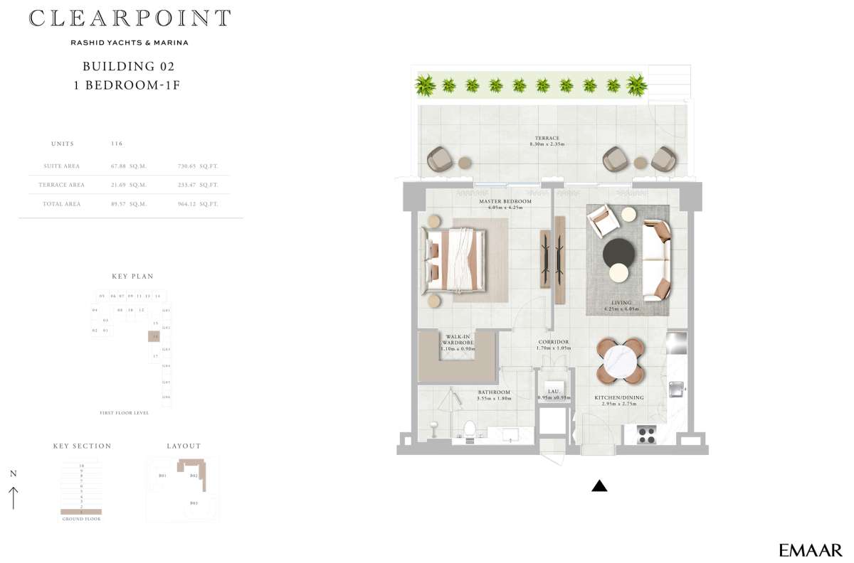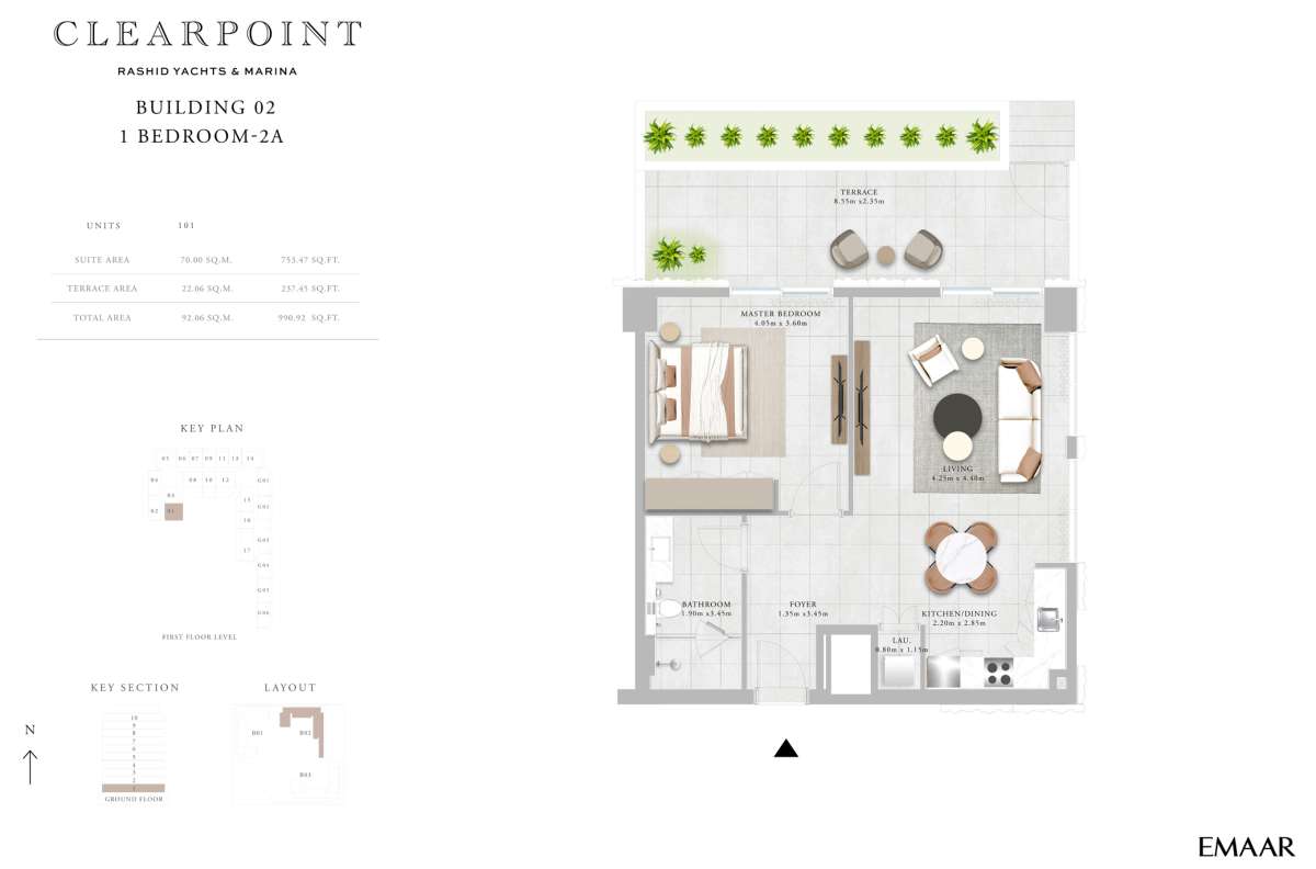 With its ideal location at Rashid Yachts & Marina in Mina Rashid, Clearpoint offers an unmatched fusion of elegance and ease. Its popularity is greatly influenced by its location.