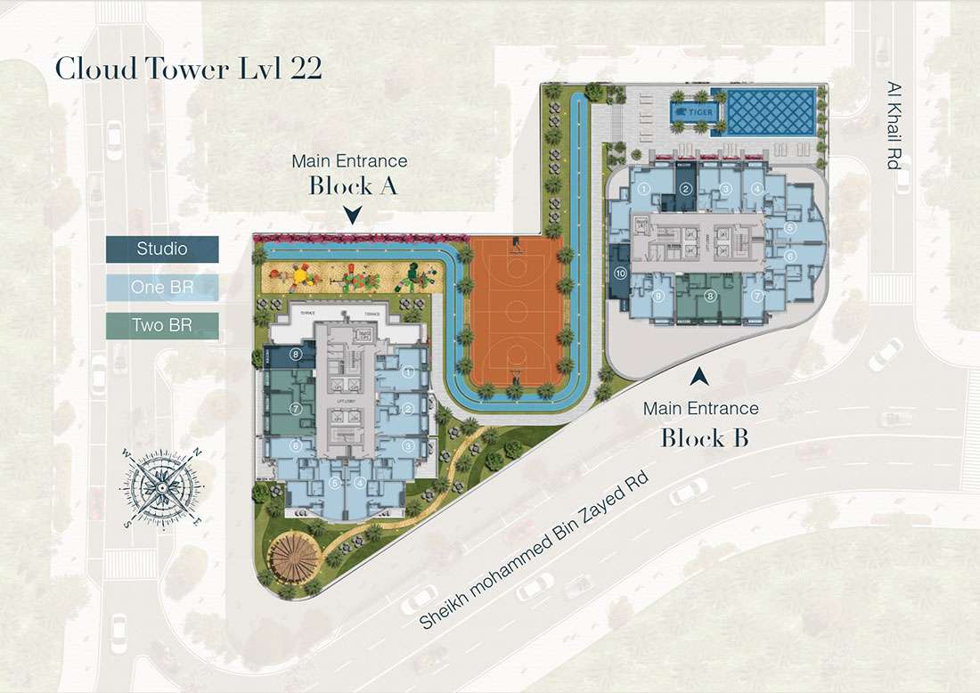 Cloud Tower Block A is a 34-storey residential building under development in Cloud Tower, JVT District 2, Jumeirah Village Triangle, Dubai. developed by Tiger Properties, delivers an exceptional luxury living experience. This high-rise complex features interconnected buildings with multi-level parking, office spaces and retail amenities. The tower offers a variety of residences, including studios and 1 and 2-bedroom apartments. Located strategically in JVT, residents benefit from easy access to major highways and public transport for seamless city connectivity. The tower's striking architectural design adds a distinctive character, while the apartments provide a tranquil and inviting atmosphere. Each unit serves as a personal retreat with stunning views of the palm trees and city skyline. Cloud Tower A also includes upscale amenities like multi-level parking, retail spaces and swimming pools, enhancing the overall luxury experience.