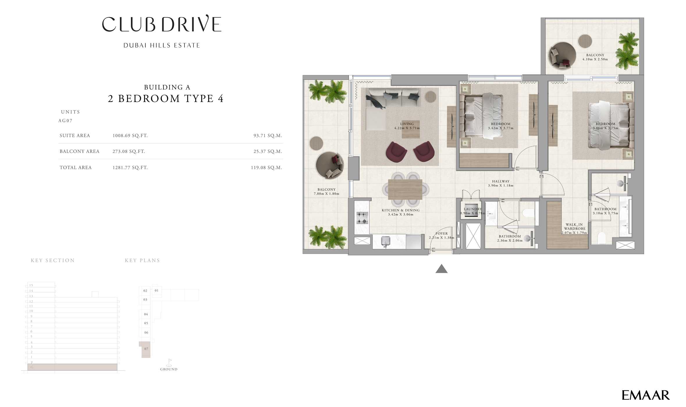 Set against the backdrop of the iconic Burj Khalifa and the Dubai skyline, Club Drive offers a sophisticated address that inspires peak performance every day. The Dubai Hills Boulevard, adorned with art installations and lush trees, serves as a scenic pathway connecting key destinations within the estate, creating a comfortably shaded environment for all to enjoy.