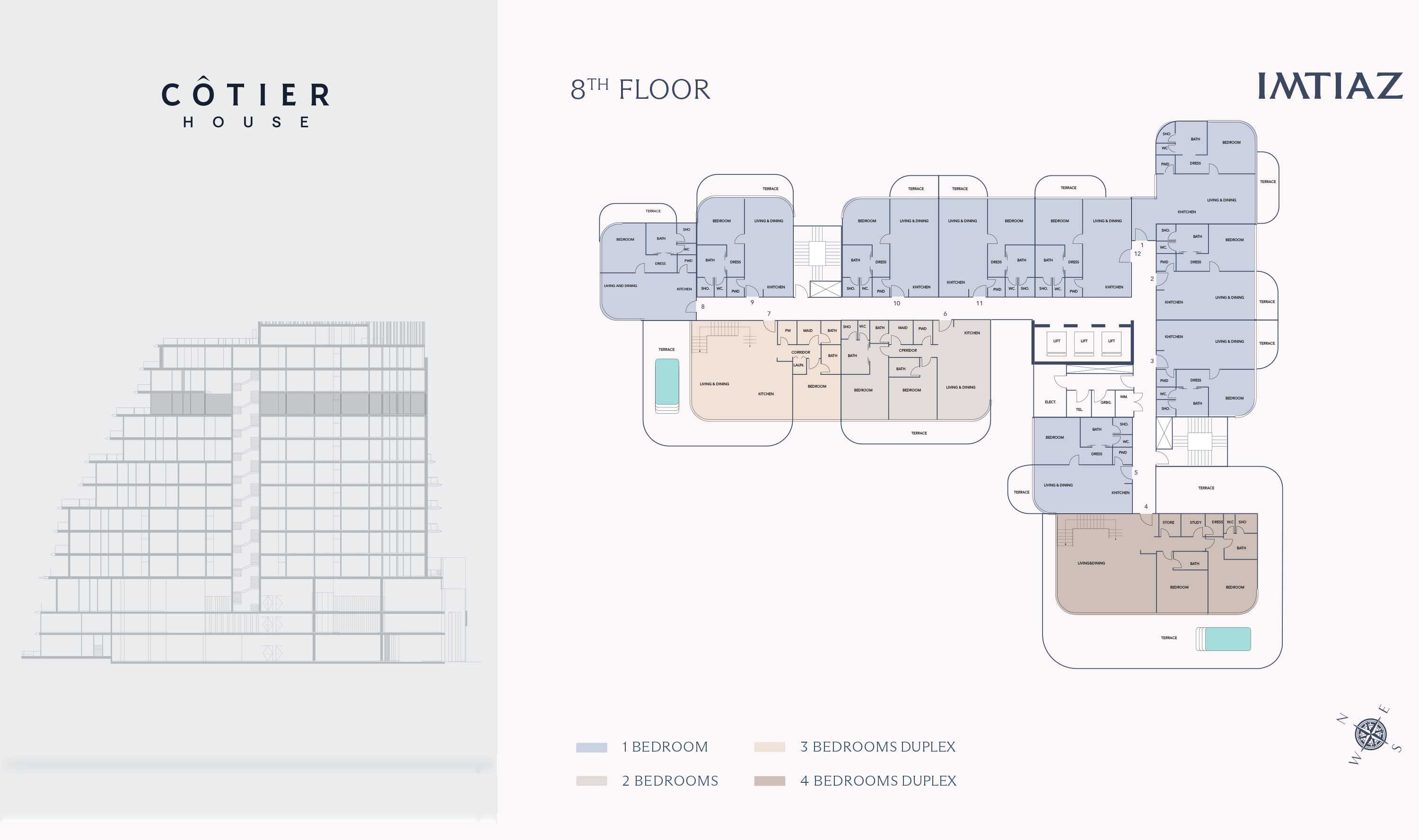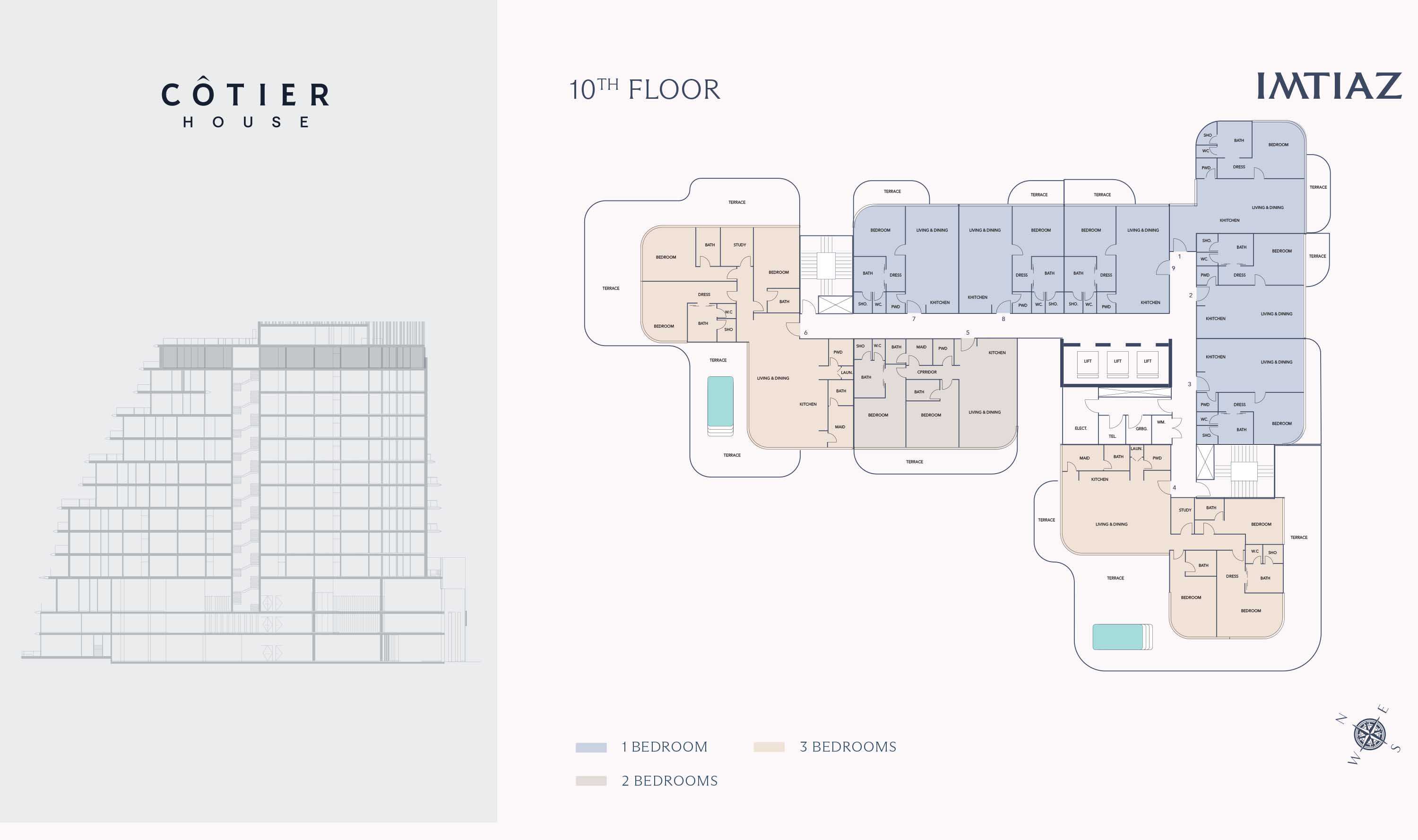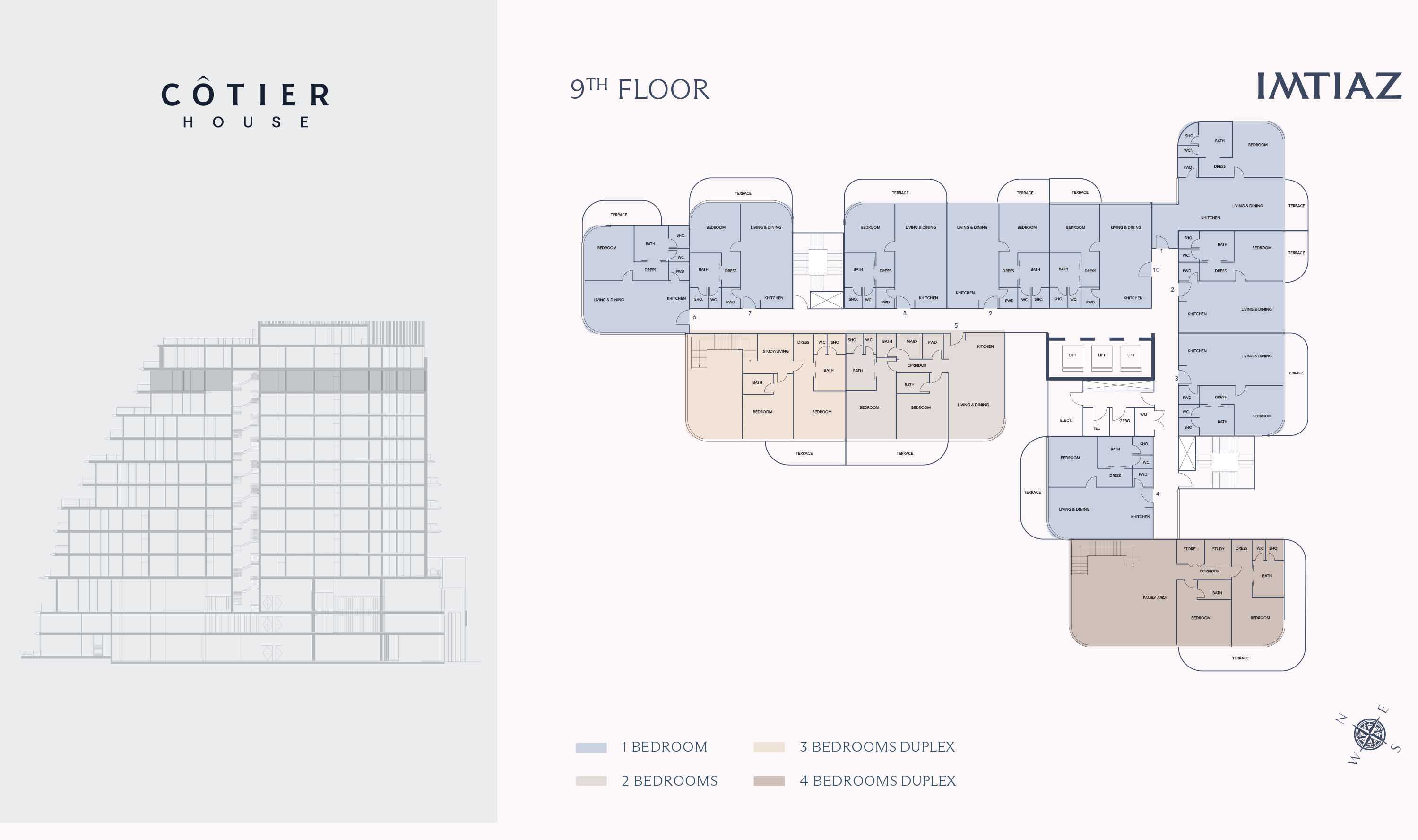 Unit Mix: Offers a blend of studios, 1‑, 2‑, and 3‑bedroom apartments, plus select duplex penthouses with private terraces.