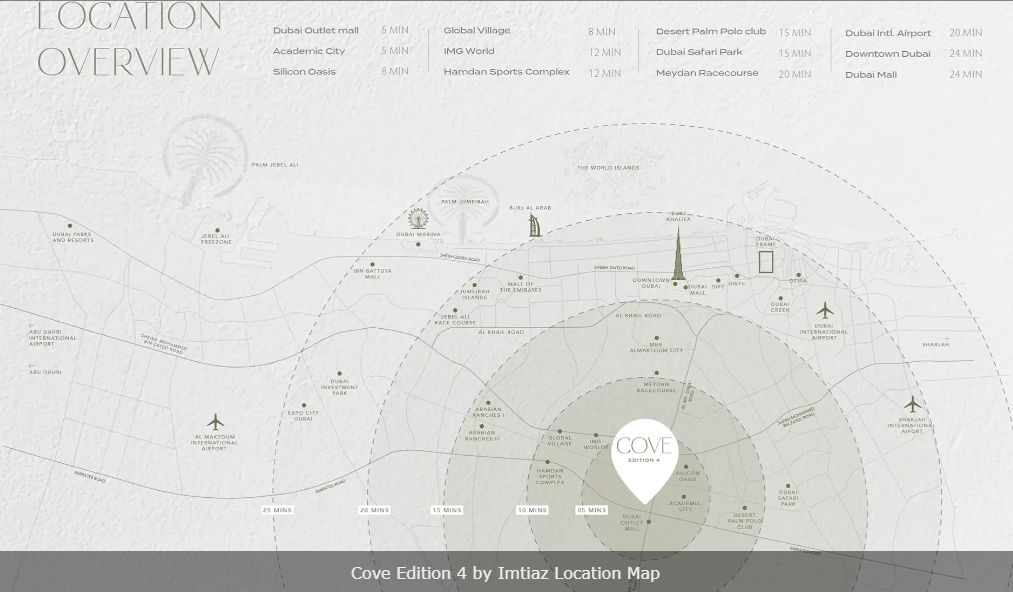 Cove Edition 4 by Imtiaz Developments is a sanctuary of modern sophistication and timeless luxury nestled in the vibrant community of Dubailand with studios, 1 & 2 bedroom apartments. This architectural masterpiece is designed to redefine contemporary urban living, offering a unique blend of comfort, elegance, and convenience. The precise creative design architecture mingles with its environment by boasting its appeal. Through its commanding nature, it empowers itself with complete grace while expressing absolute confidence. This complex makes a powerful declaration that showcases both its fashion sense and fundamental value. The developers carefully chose every dimension as their work embodies the purposeful incorporation of vital aspects.