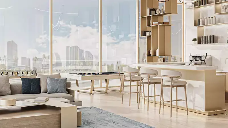 Life at Cove Edition 6 unfolds as a curated experience. Residents can enjoy panoramic views of the Dubai skyline from the rooftop infinity pool, unwind in landscaped gardens, or maintain wellness in the fully equipped fitness centre. Every element has been considered to evoke a sense of calm and elevate everyday living.