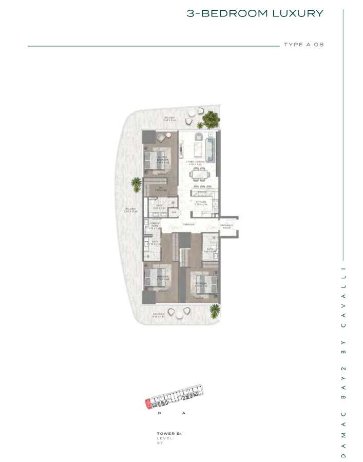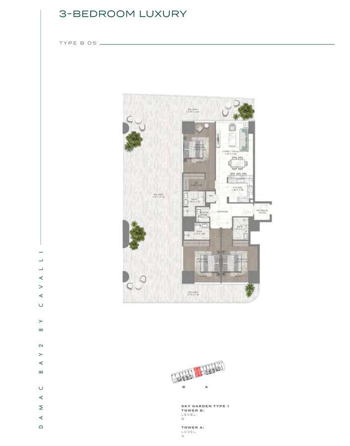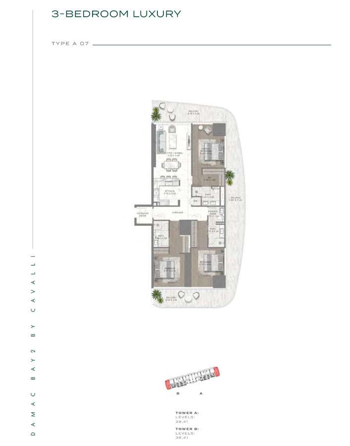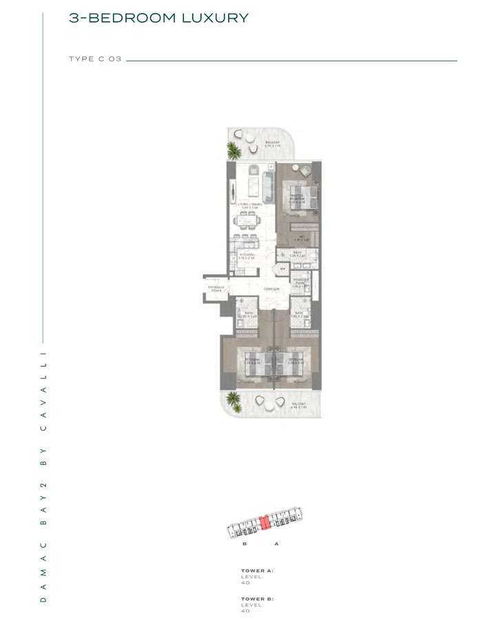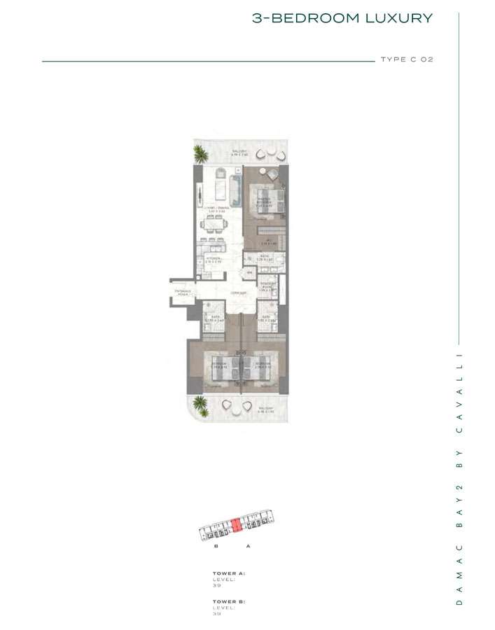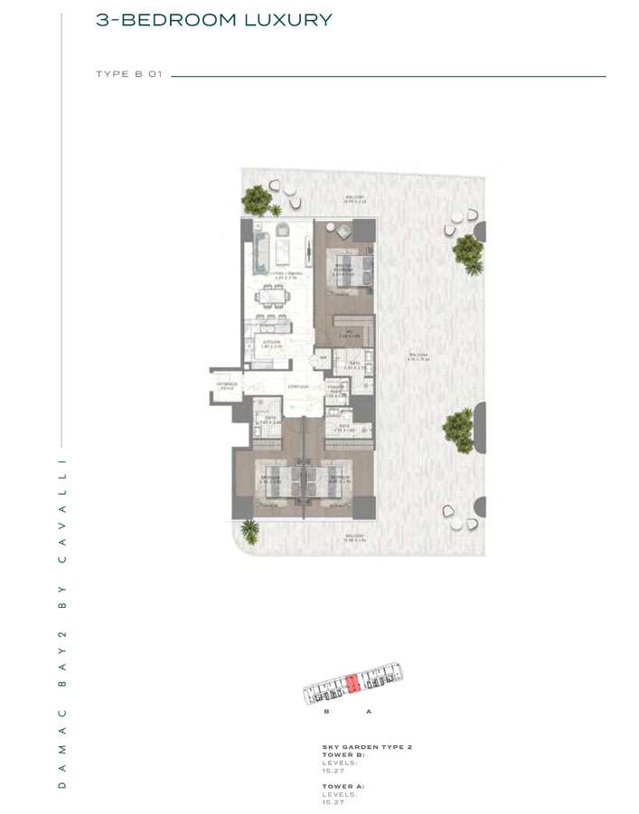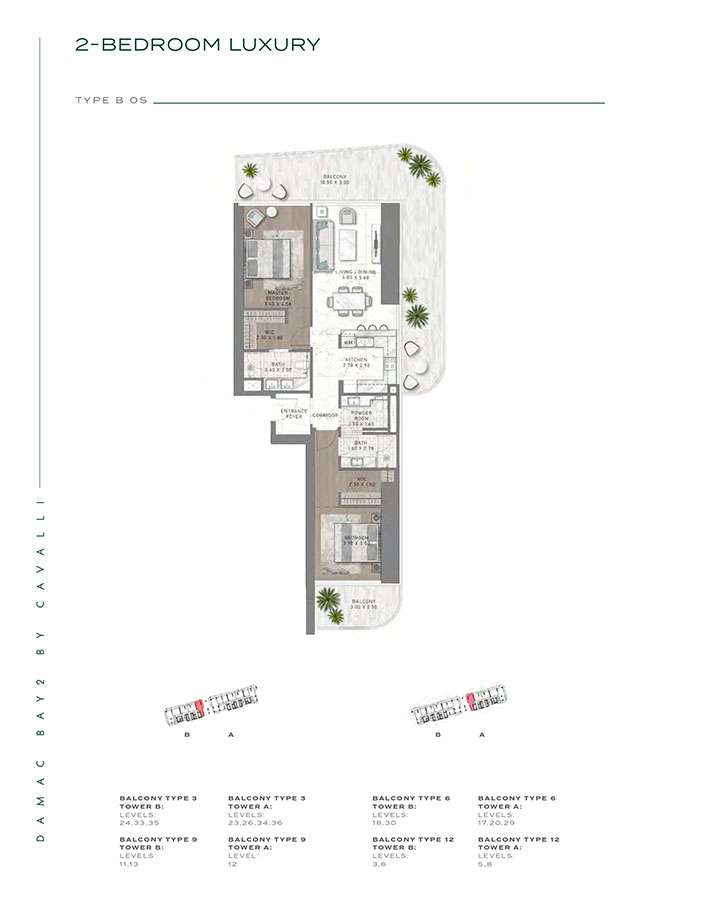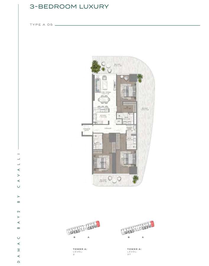 Damac Bay 2, created in partnership with the renowned Italian fashion label Cavalli, skillfully blends contemporary elegance with organic components. This project produces a unique and appealing living space with the following features: