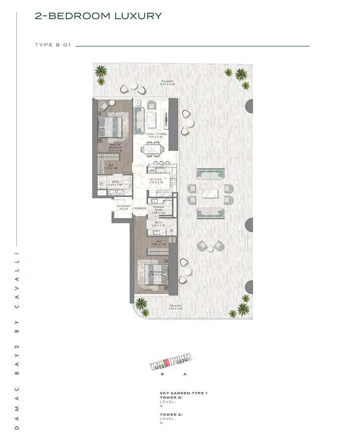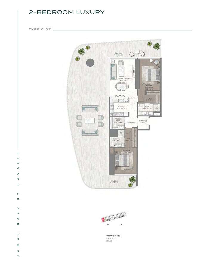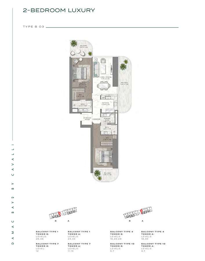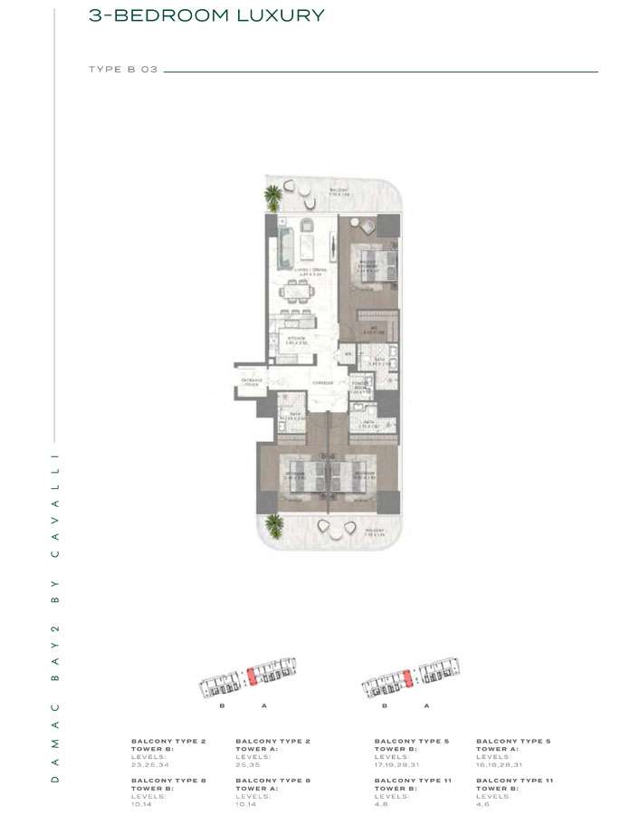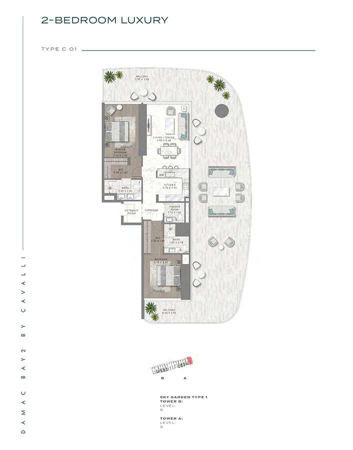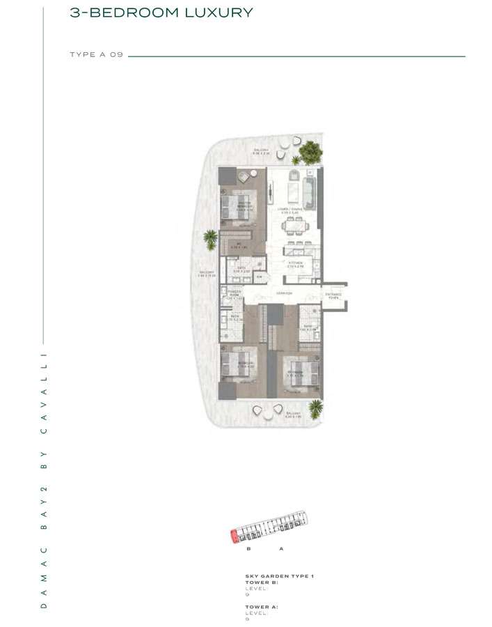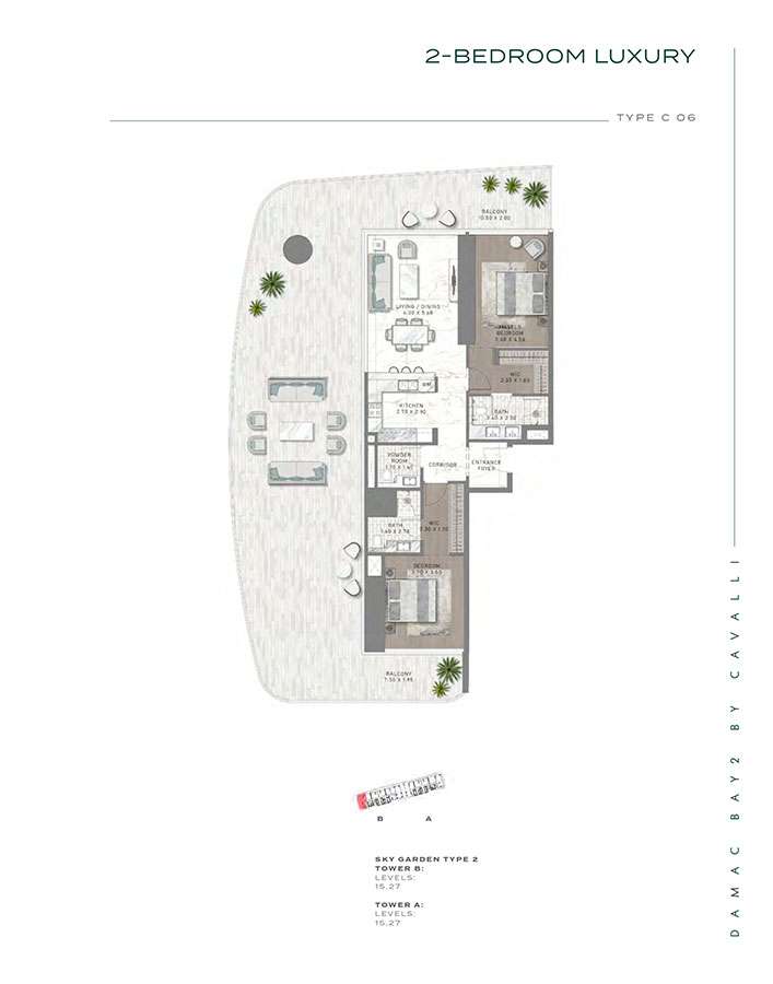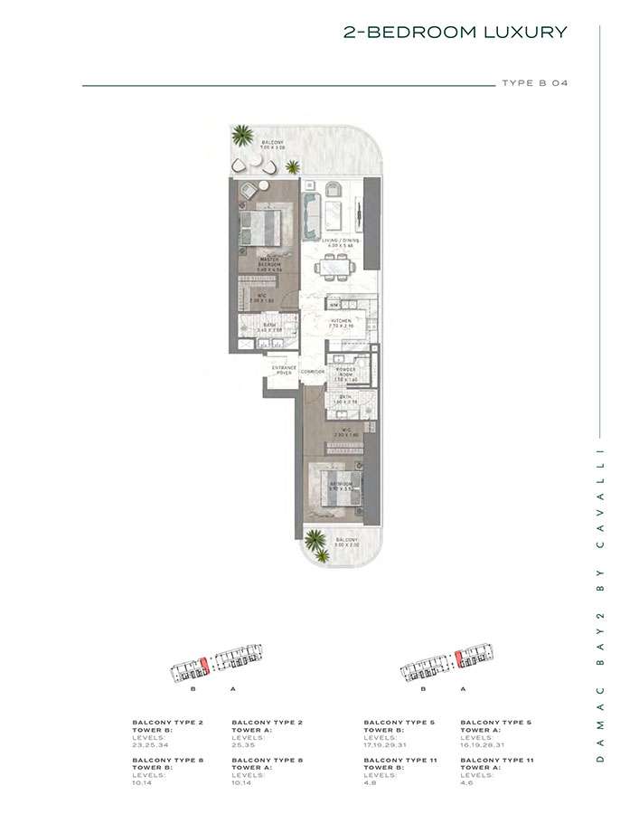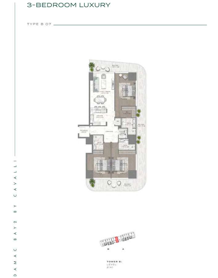 Damac Bay 2, created in partnership with the renowned Italian fashion label Cavalli, skillfully blends contemporary elegance with organic components. This project produces a unique and appealing living space with the following features:
