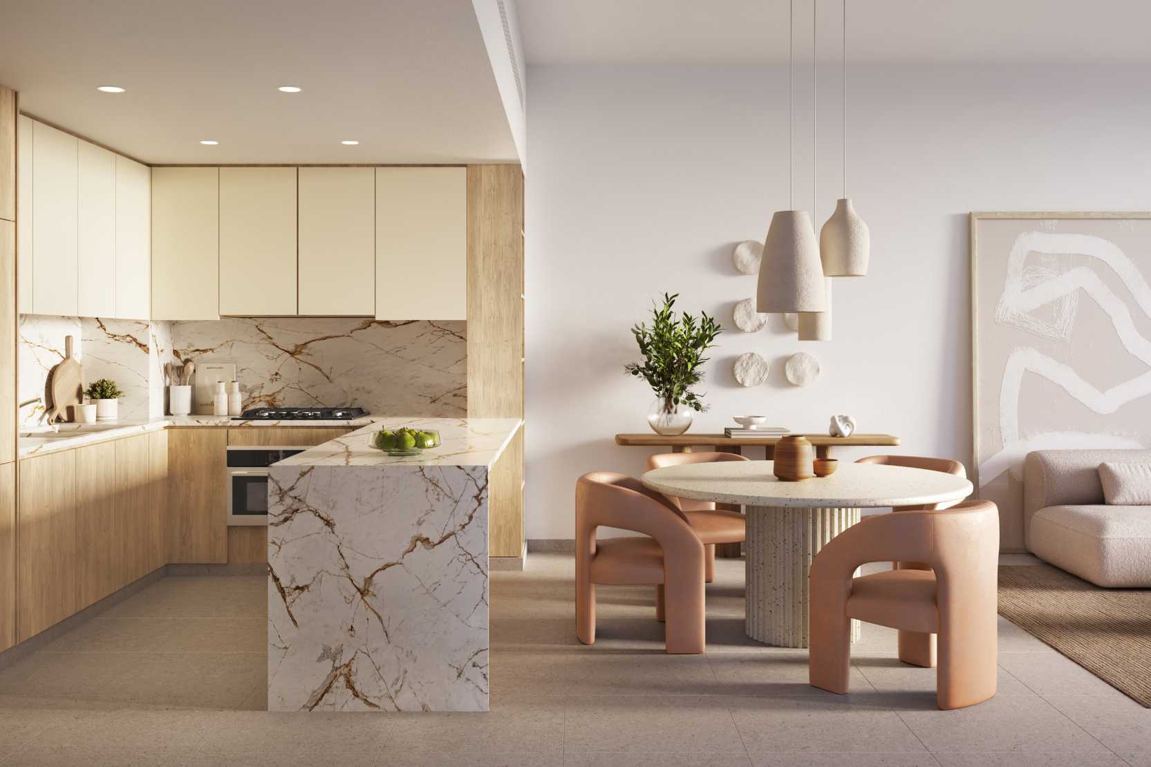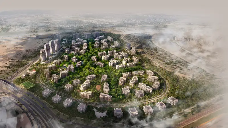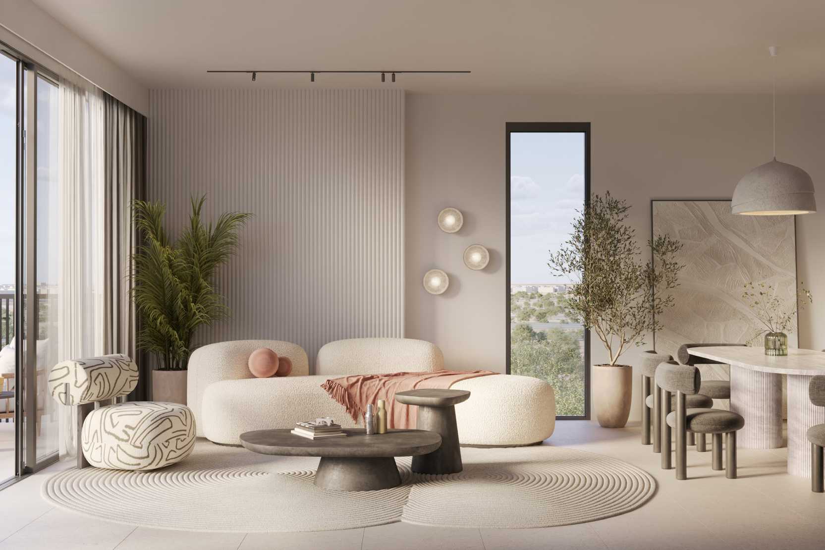 Set within Dubai's first forest-integrated community, Majid Al Futtaim's Distrikt at Ghaf Woods offers a range of apartments with 1, 2, and 3 bedrooms, as well as garden flats and duplexes. Every home in this vertical neighborhood is built to take advantage of views of the forest paths, the central greenery, and the sky-level communal areas, giving residents a front row to nature.