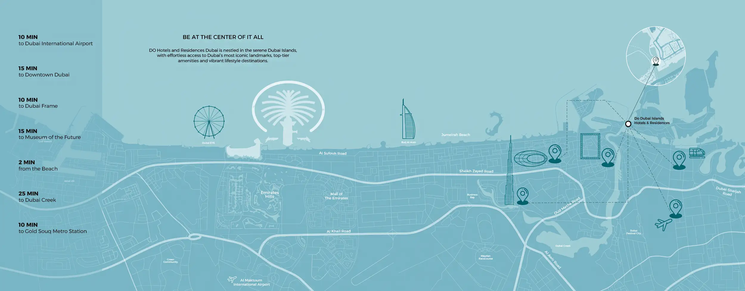 - Ideally situated on the beach in Dubai Islands, only ten minutes from Dubai International Airport and a short distance from the city's main attractions.