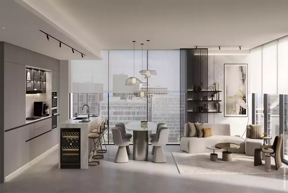 With its exquisite depiction that combines top-notch construction with smart home technologies and friendly settings, the prime development sets a new benchmark for skyscraper residences in Dubai's premium setting. The residential complex's thorough attention to every detail that improves residential quality makes it a symbol of refinement. The facade features modern architectural features that maximize indoor space and natural light while providing unhindered views of the skyline. Together with contemporary shapes and state-of-the-art amenities, the interior spaces' well-planned layouts convey luxury.