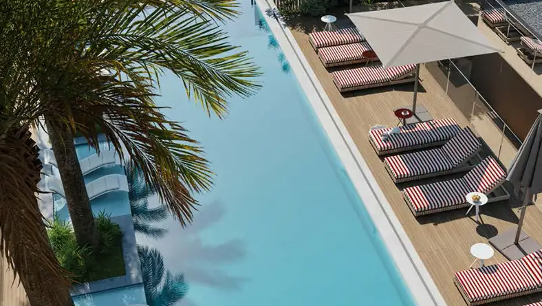 The Pilates studio and recovery lounge are designed to offer a holistic wellness option, plus there is the cinema lounge and kids club to keep everyone entertained. A stunning designed pool presents a resplendent haven, pleasure paired with The Mill Café, wherever residents can loosen into gourmet surrounds.