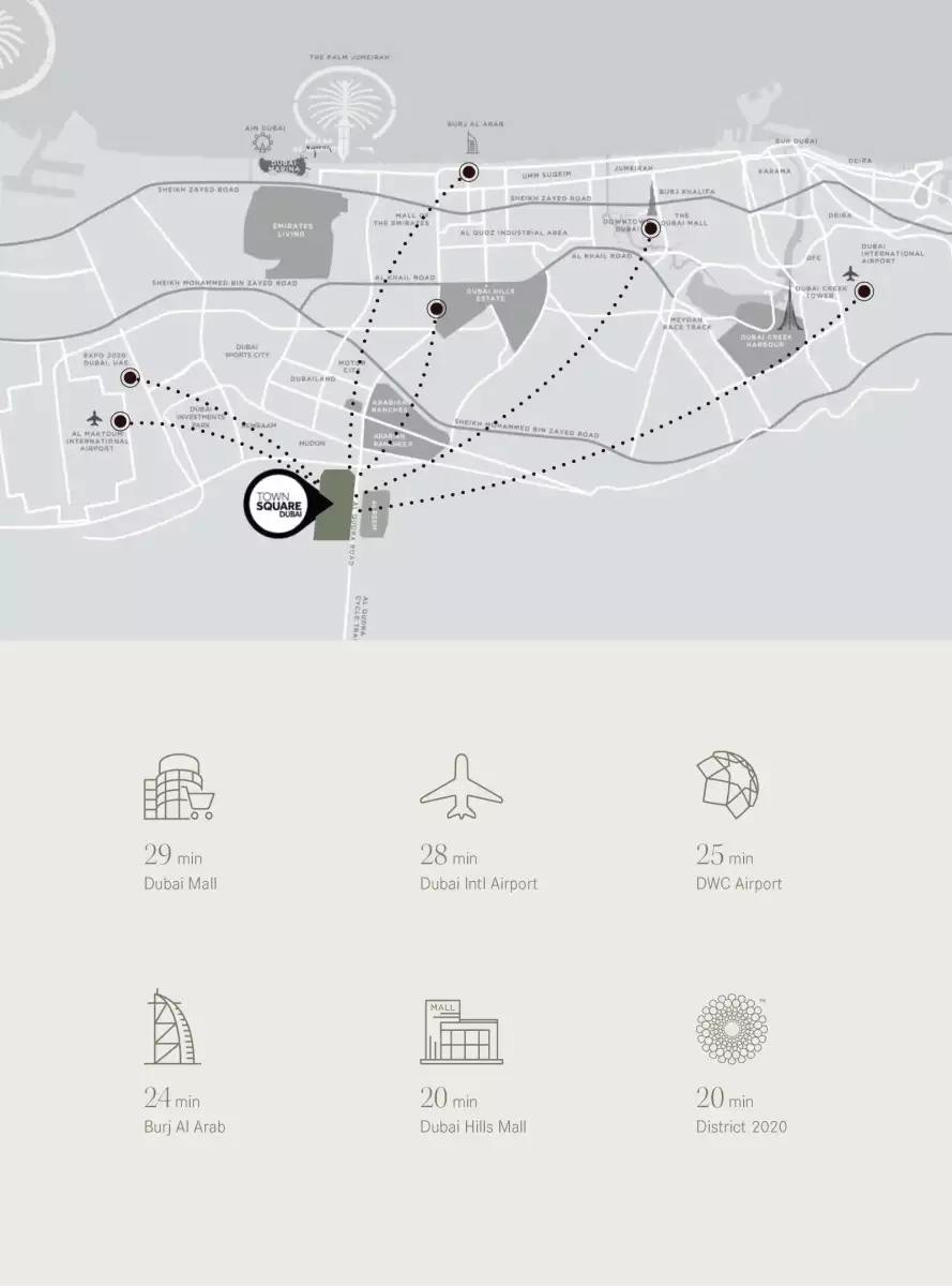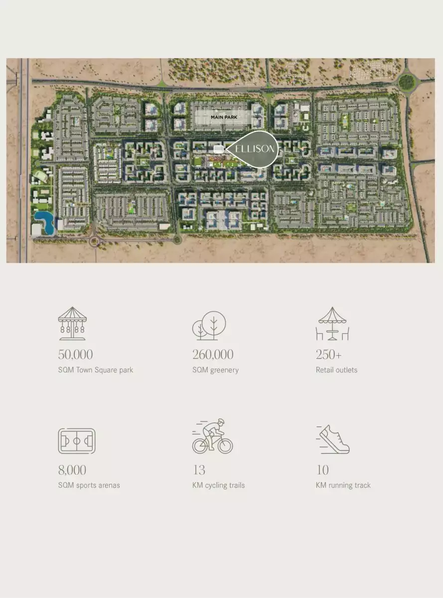 Ideally situated at the entrance of Town Square Park, Ellison enjoys a privileged position within one of Dubai’s most sought-after communities. Each residence is surrounded by beautifully landscaped gardens and scenic views, offering a serene retreat with effortless connectivity to the city’s major destinations. With easy access to Dubai’s key landmarks, business districts, and retail hubs, residents experience true convenience while living in a self-contained, amenity-rich community.