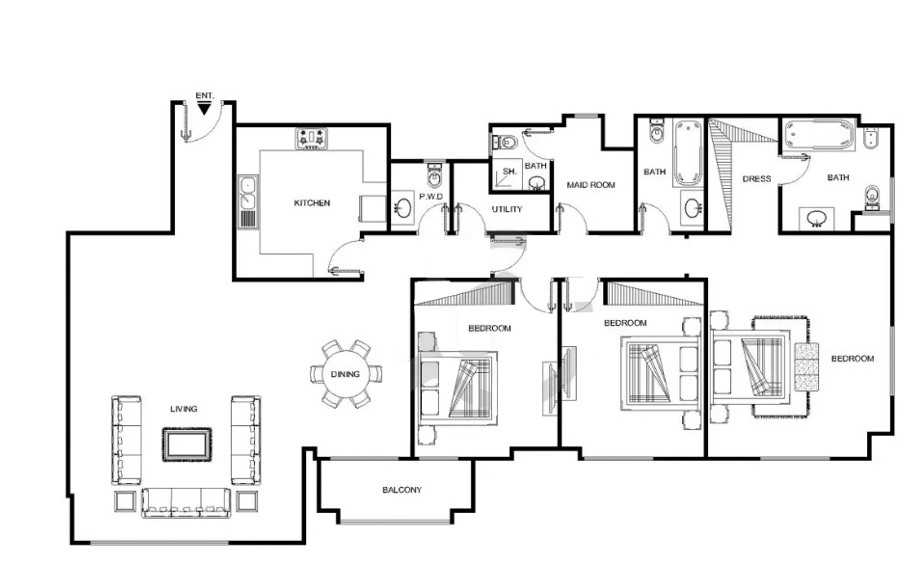 JG03 3-Bedroom Apartment Details: