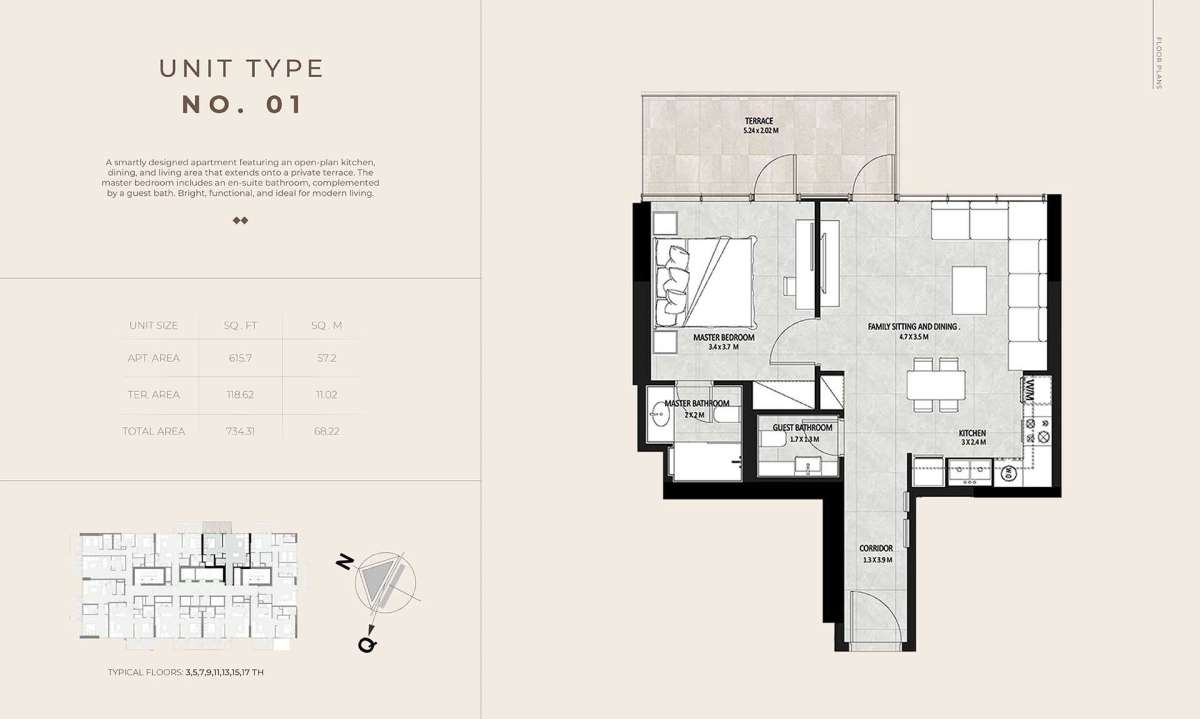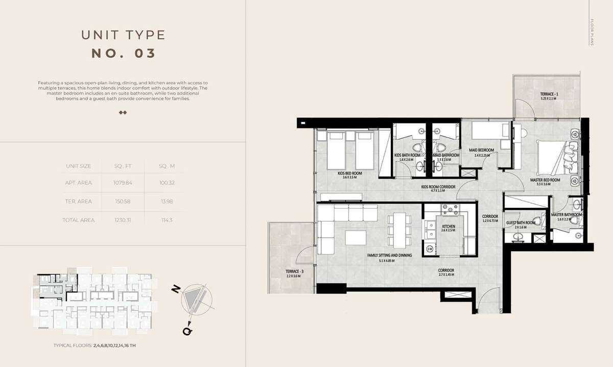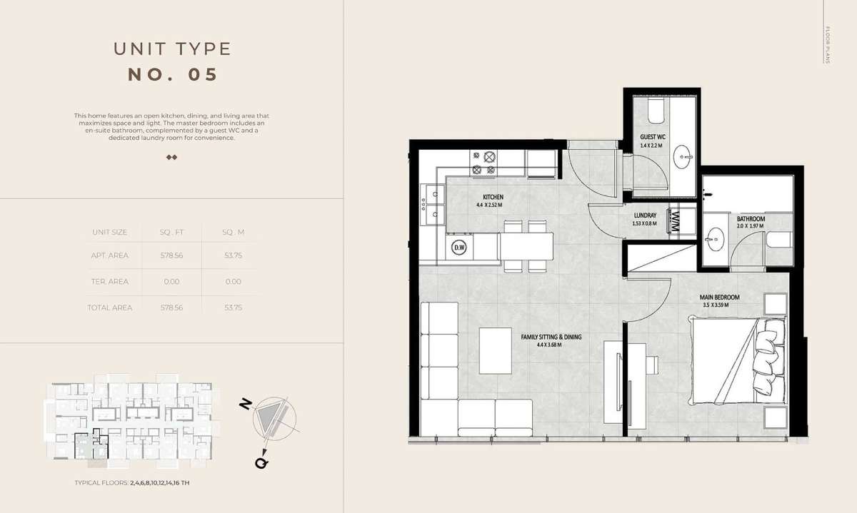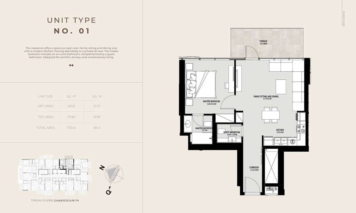Future Residence is conveniently located in the center of Meydan City, providing residents with a tranquil residential environment while being close to some of Dubai's most sought-after neighborhoods. The region is renowned for its expansive boulevards, well-planned infrastructure, and easy access to important locations.