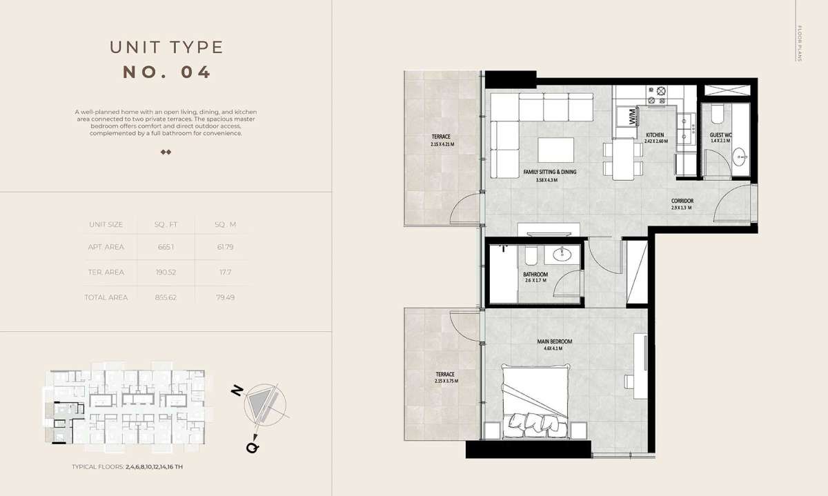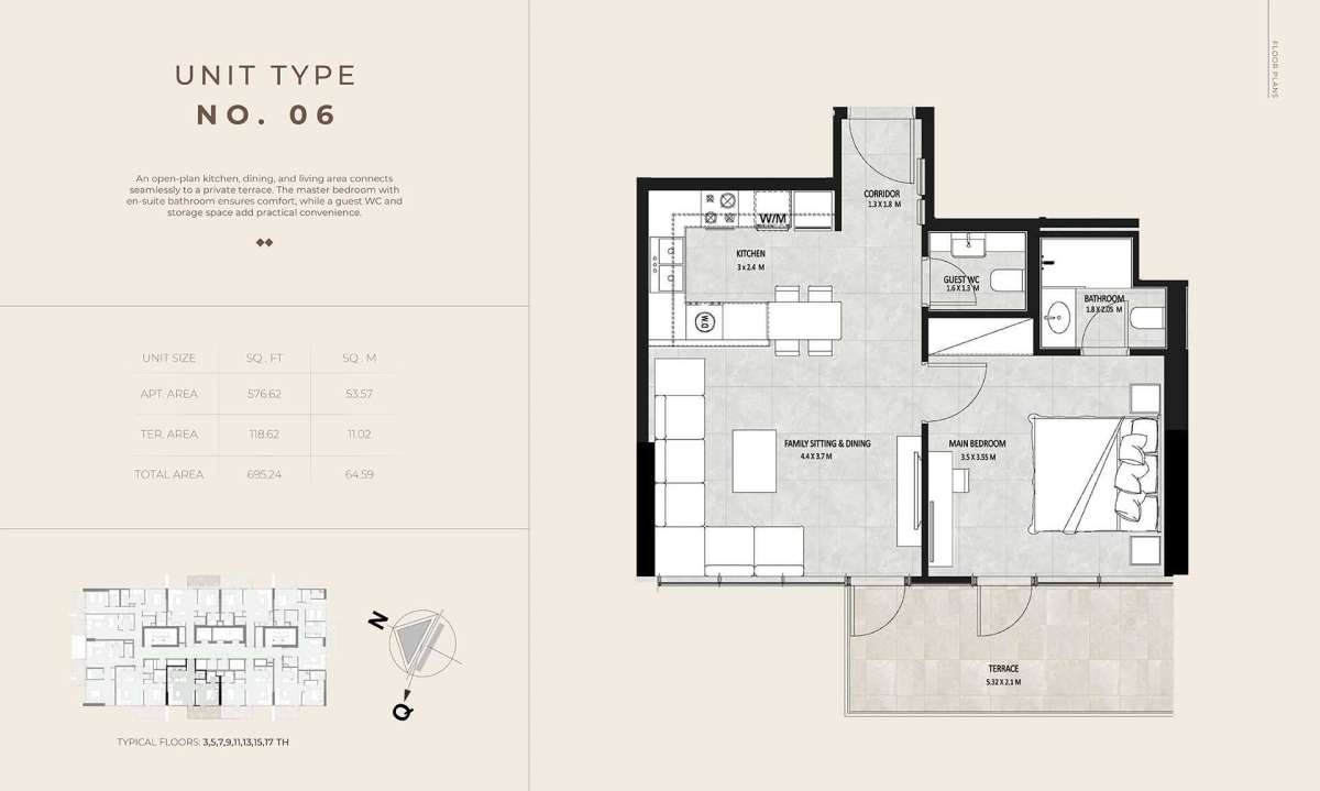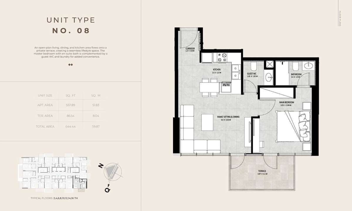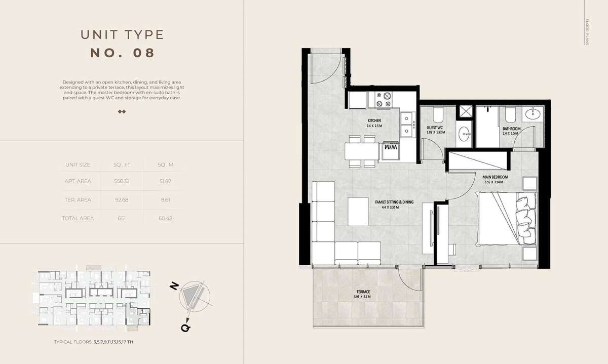Future Residence is conveniently located in the center of Meydan City, providing residents with a tranquil residential environment while being close to some of Dubai's most sought-after neighborhoods. The region is renowned for its expansive boulevards, well-planned infrastructure, and easy access to important locations.