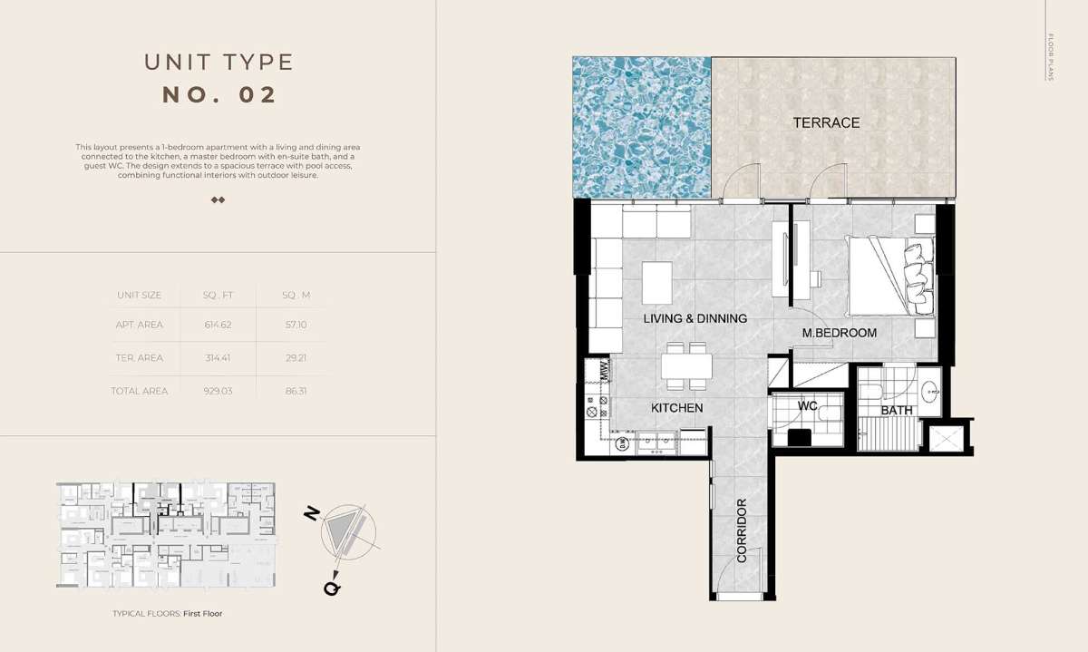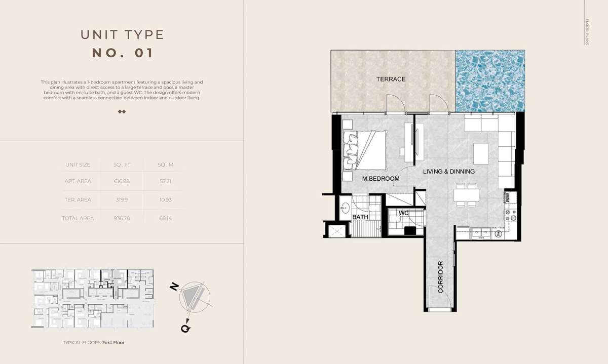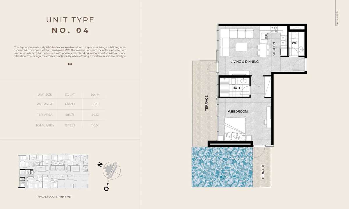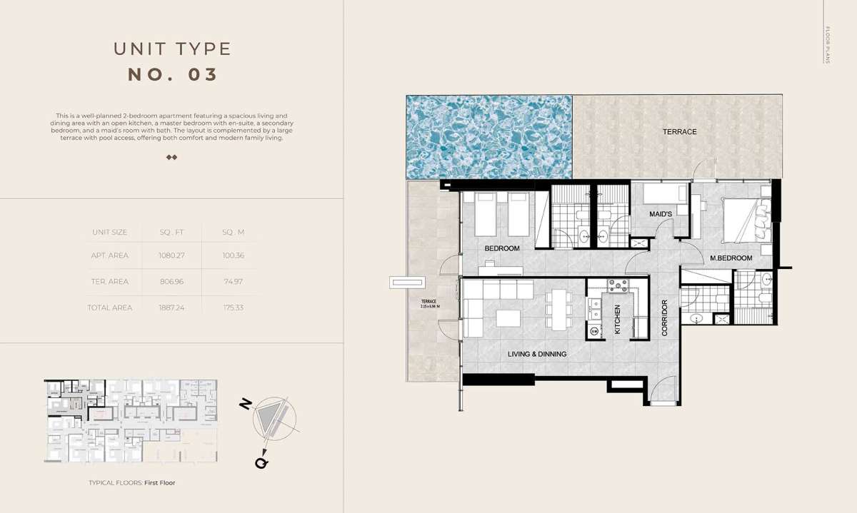 Each house is finished with premium materials and state-of-the-art smart technology, and it offers a carefully chosen selection of one-bedroom flats, one-bedroom layouts with a private pool, and spacious 2.5-bedroom residences. Handover is scheduled for October 2027, with prices starting at AED 1,350,000.