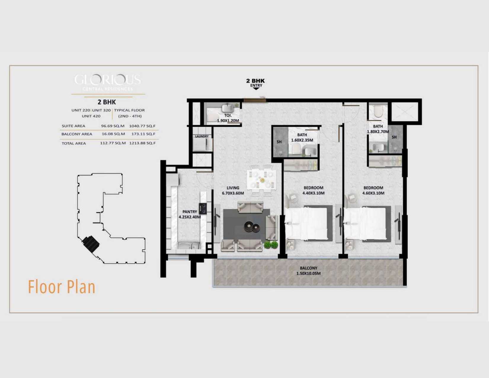 Designed with architectural elegance and functionality in mind, Glorious Central Residences features a ground level, podium, and five residential floors, housing a variety of generously sized apartments tailored to meet the expectations of contemporary living. With expansive layouts, clean lines, and an emphasis on light and space, each home is crafted to provide comfort, privacy, and modern convenience.