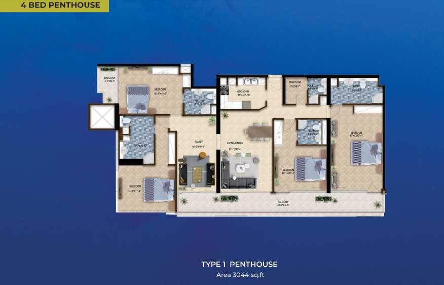 Type 1 and 2 - 4 BED Duplex Penthouse