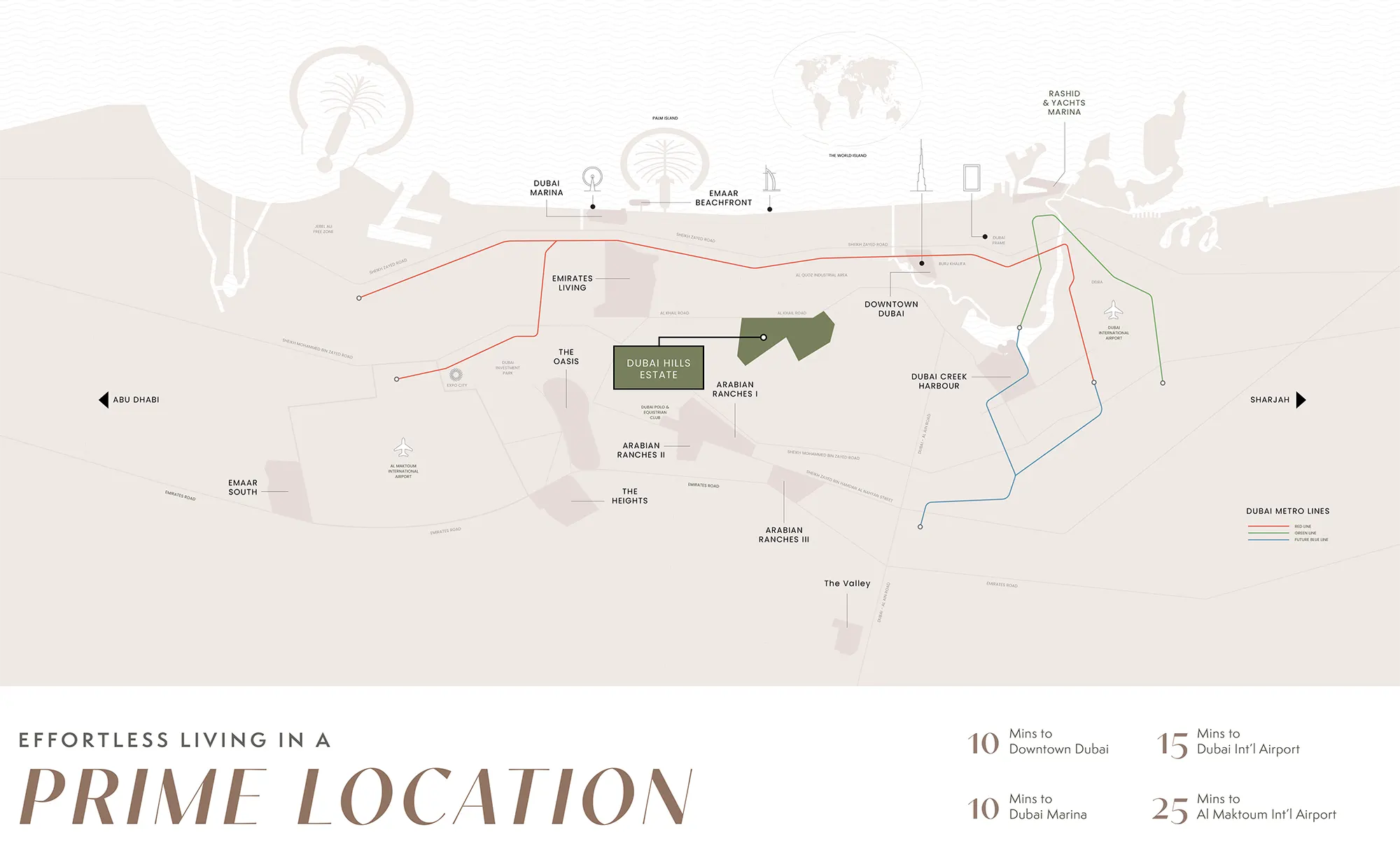 Set in the prestigious Dubai Hills Estate, the community offers seamless connectivity to the city’s key destinations. Residents are just moments away from Dubai Hills Mall for world-class shopping and dining, and the Dubai Hills Golf Club, where peaceful green fairways provide the perfect escape from the city bustle.