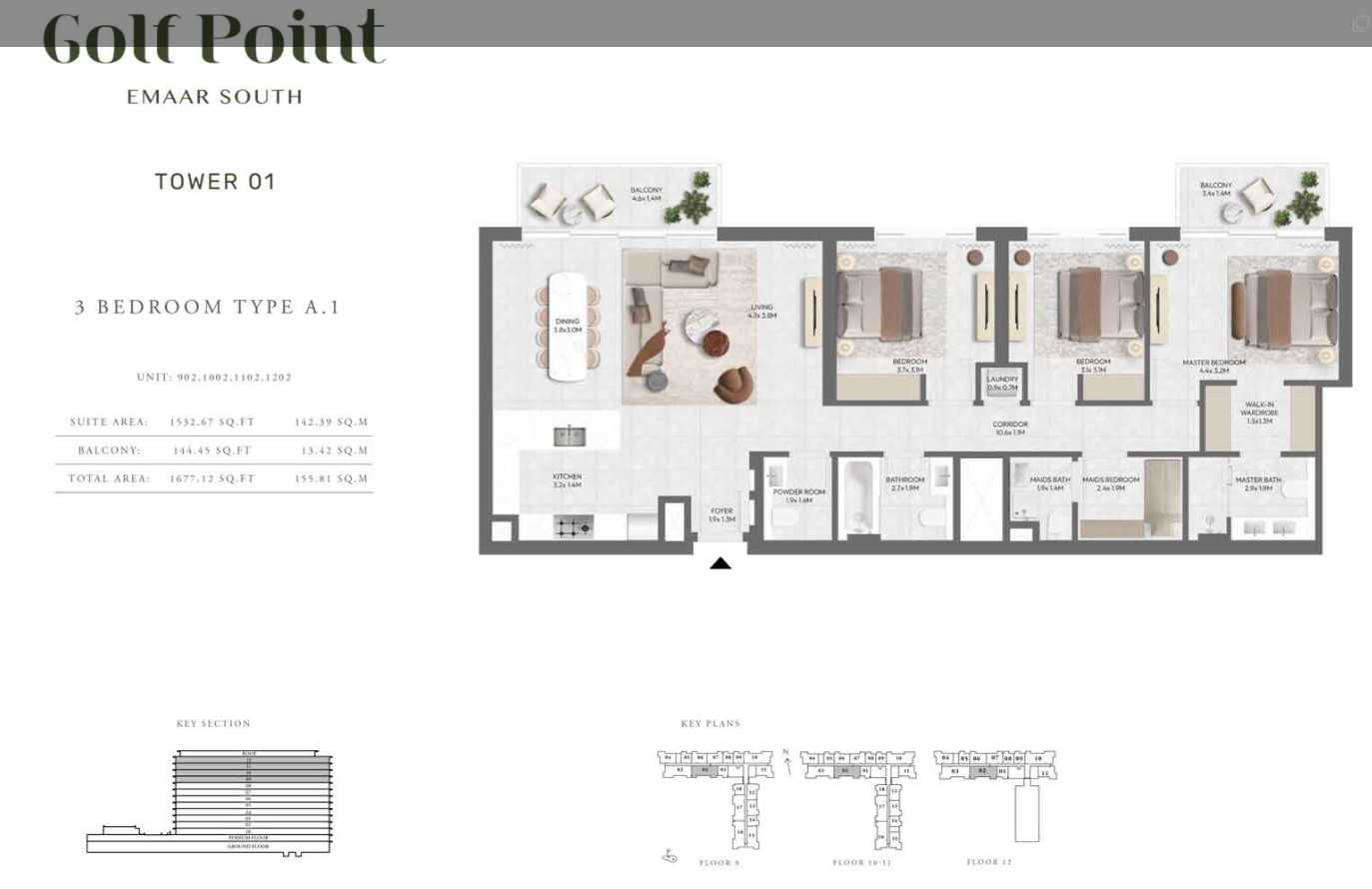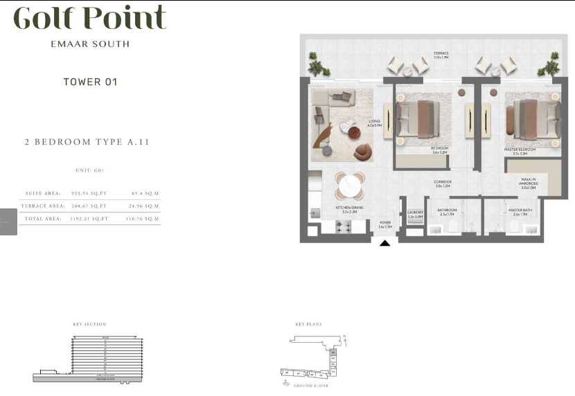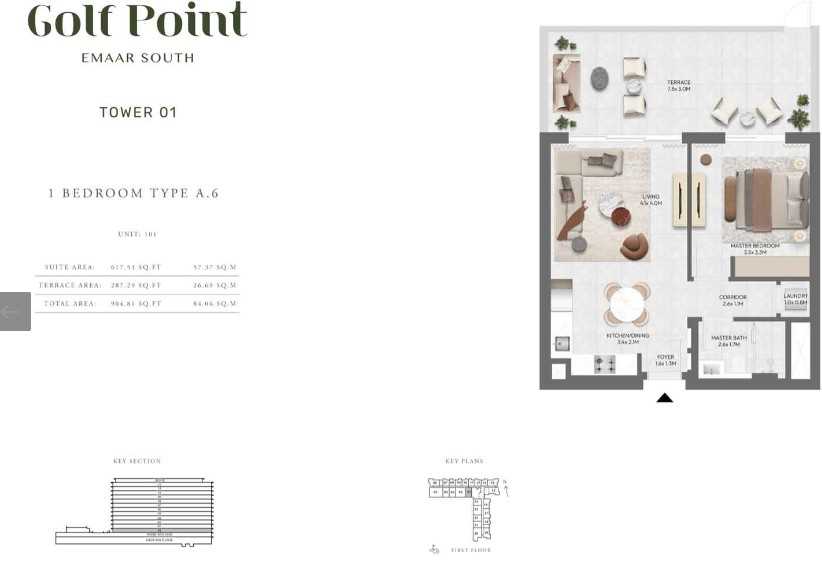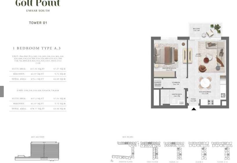 Exquisite ResidencesGolf Point Tower A features a selection of 1, 2, and 3-bedroom apartments, thoughtfully designed with open-plan layouts and high-quality finishes. Neutral color palettes, expansive windows, and spacious balconies create an inviting and airy atmosphere, perfect for modern living. The interiors seamlessly combine aesthetics with functionality, offering residents a space they can truly call home.