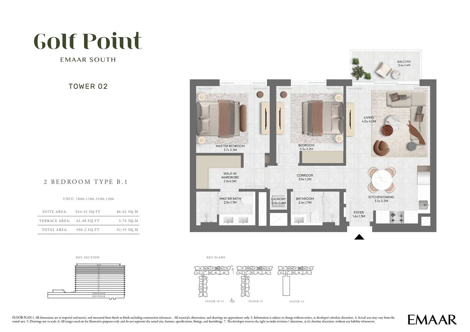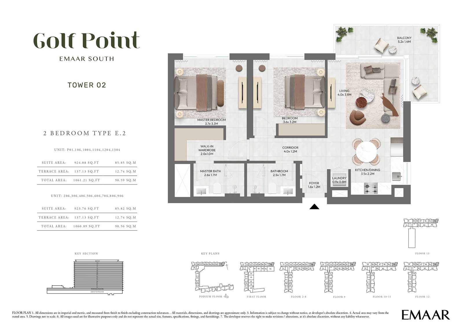 The newest residential complex of the well-known Emaar Properties, Golf Point at Emaar South, offers apartments in Dubai with one, two, or three bedrooms. Beautiful views of the golf course are a feature of this midrise apartment complex. Residents can enjoy the comforts of contemporary living while taking in the breathtaking scenery in this community, which is adjacent to the 9th hole of an 18-hole championship course.