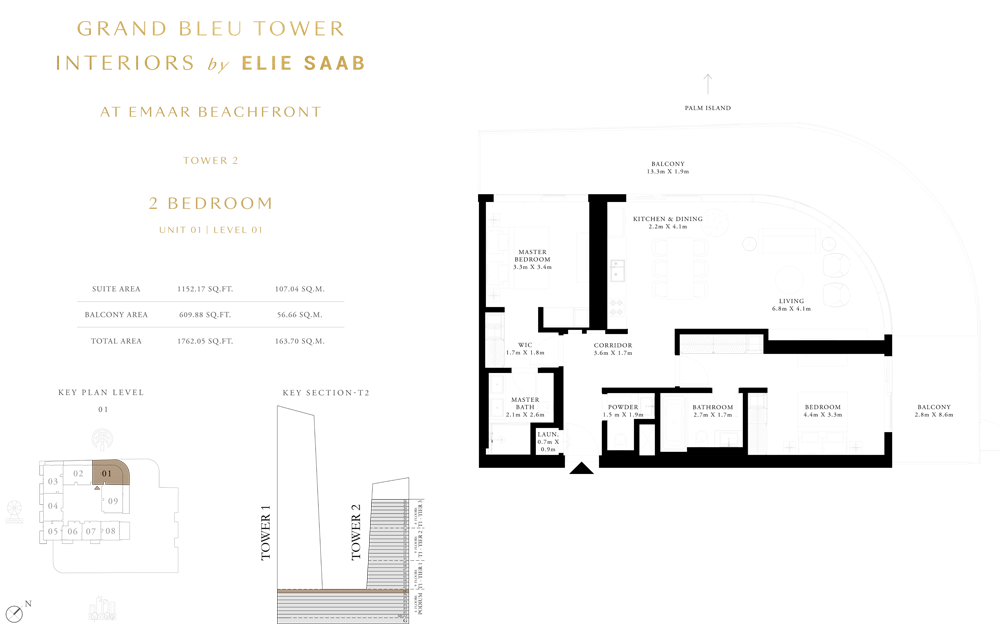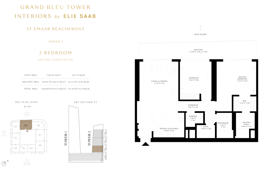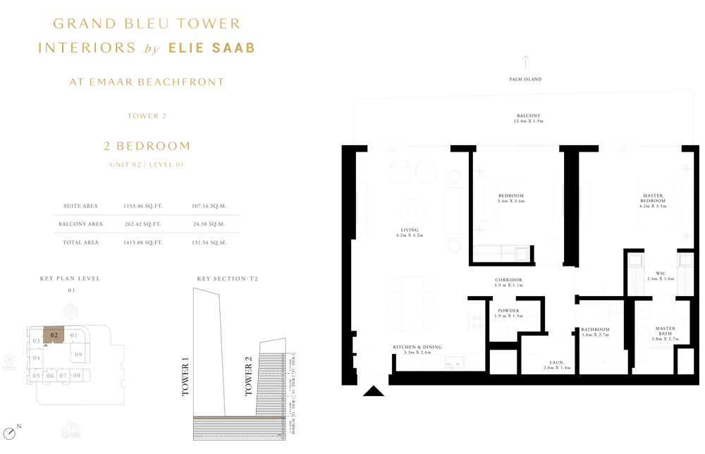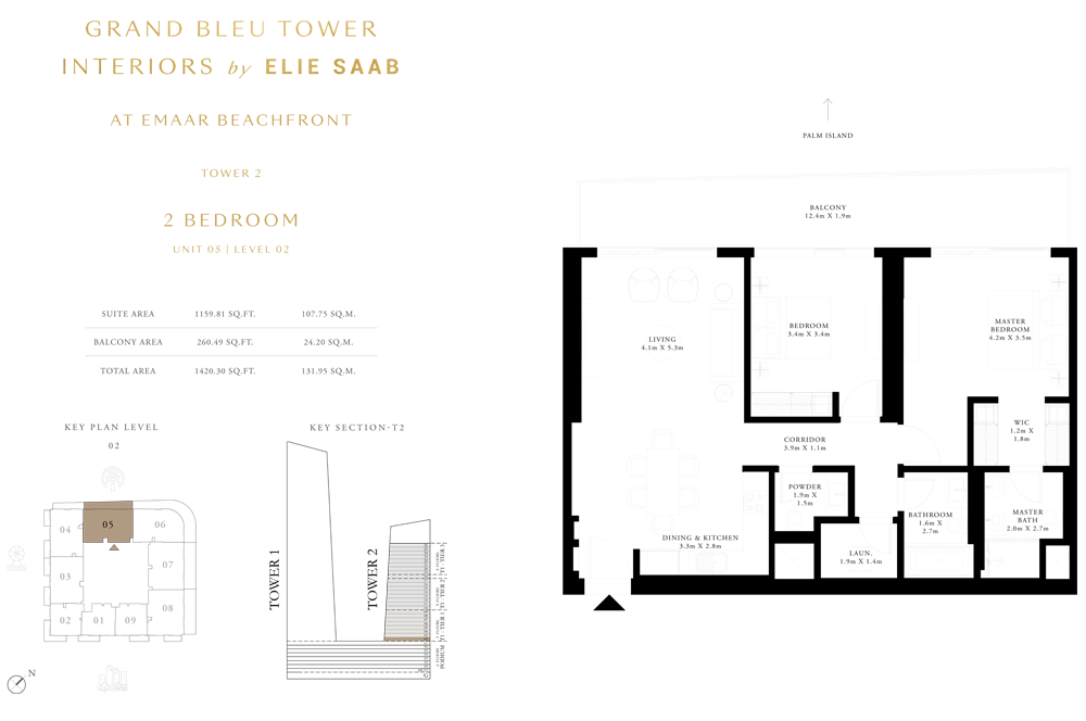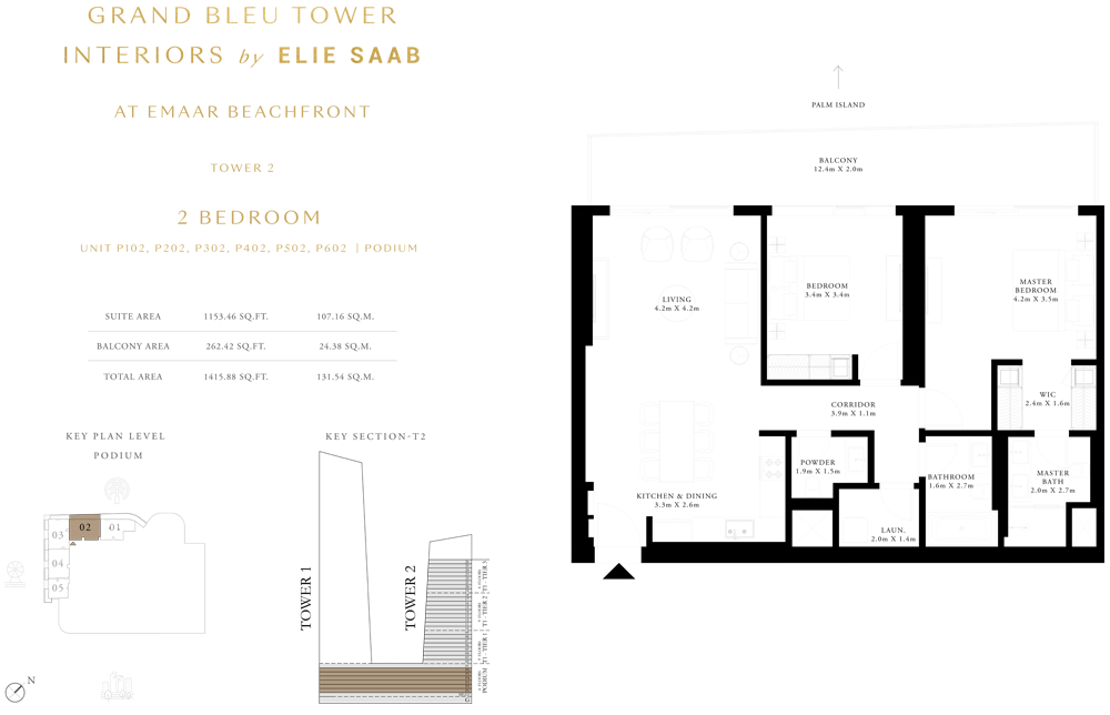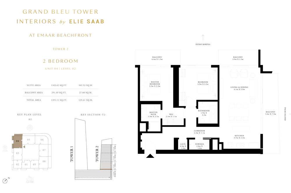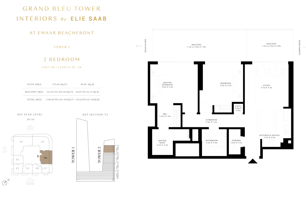 Grand Bleu Tower 2 is an exclusive residential development by Emaar Properties, located in the prestigious Dubai Harbour. This iconic tower offers a refined selection of 1, 2, and 3-bedroom luxury apartments along with spacious 4-bedroom penthouses, designed to redefine beachfront living.