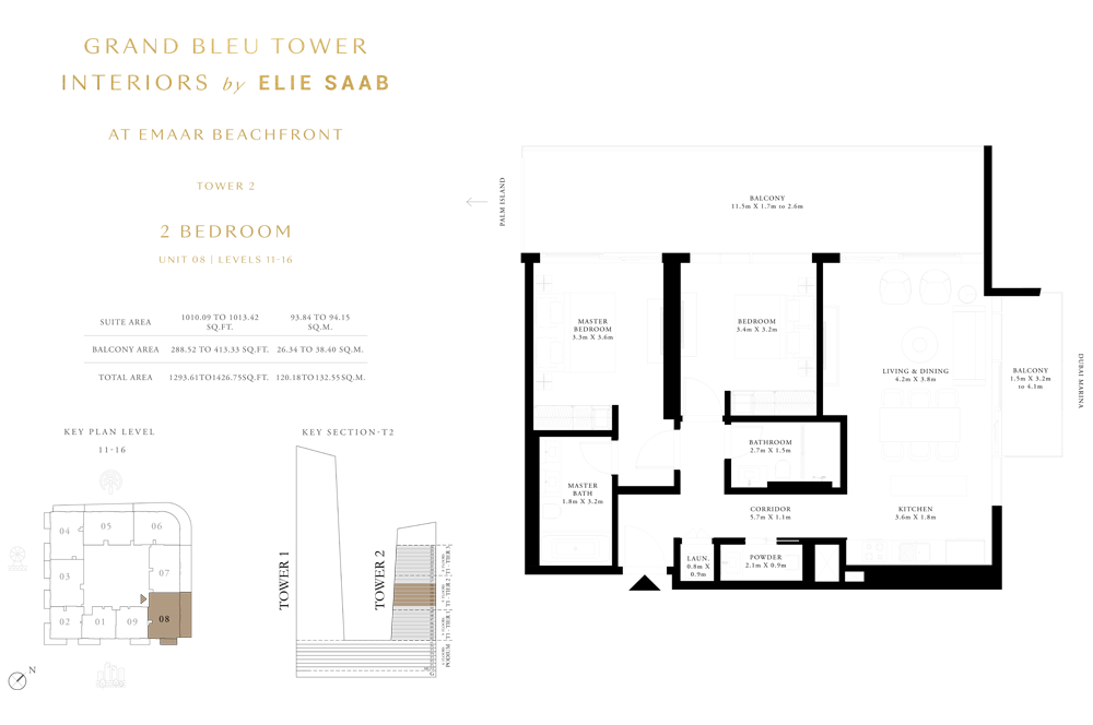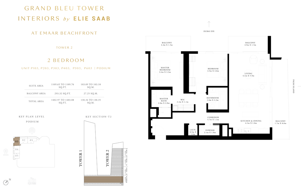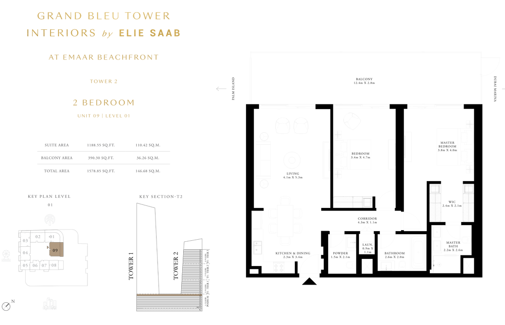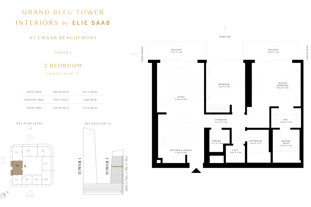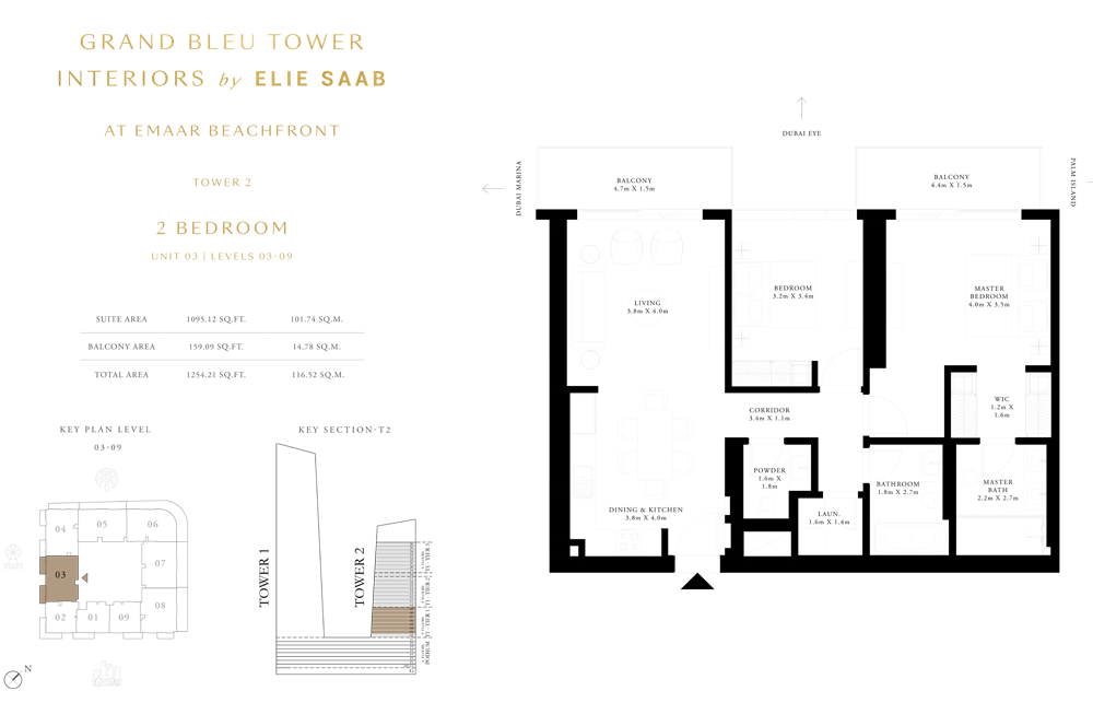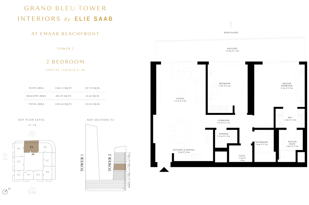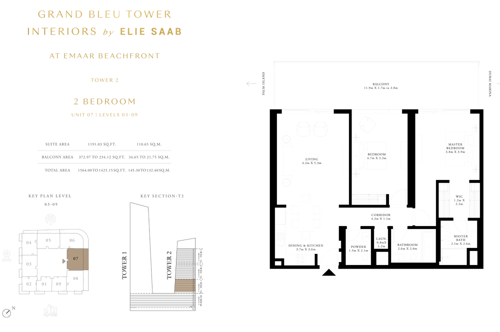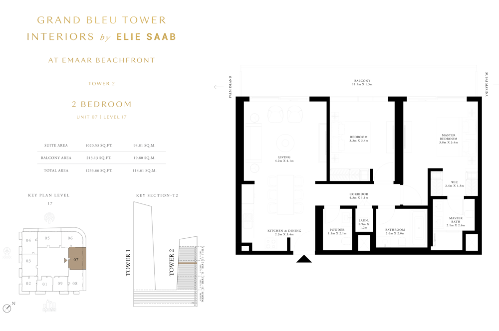 Grand Bleu Tower 2 is an exclusive residential development by Emaar Properties, located in the prestigious Dubai Harbour. This iconic tower offers a refined selection of 1, 2, and 3-bedroom luxury apartments along with spacious 4-bedroom penthouses, designed to redefine beachfront living.