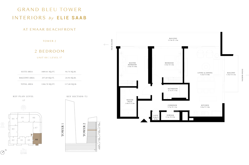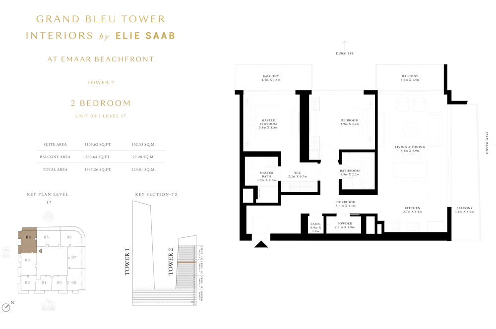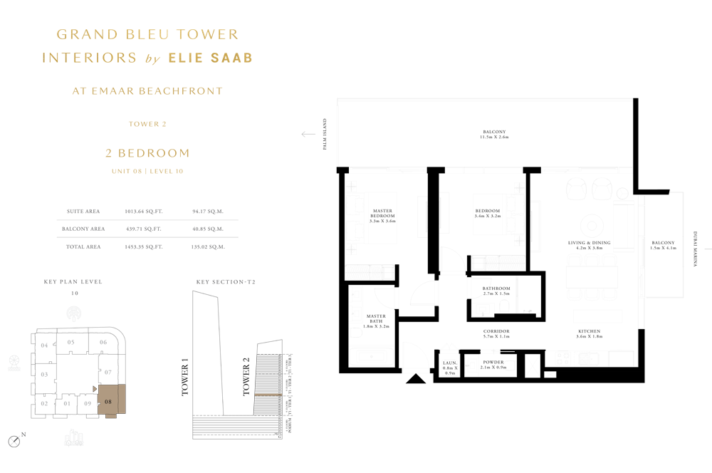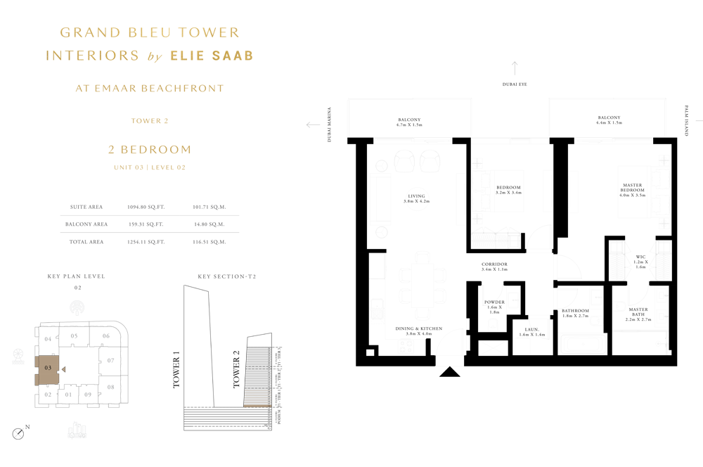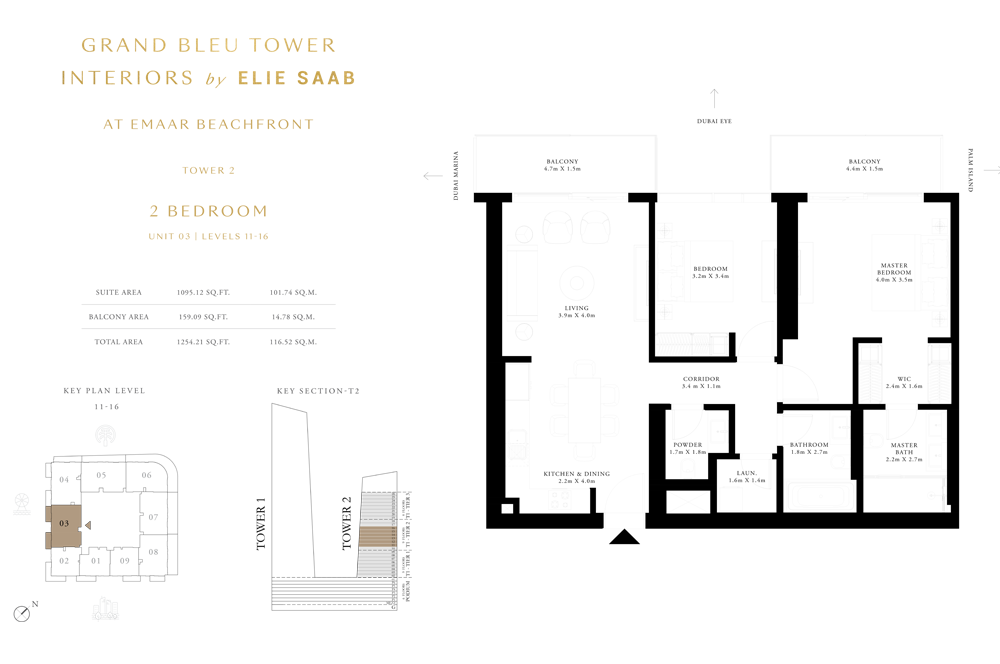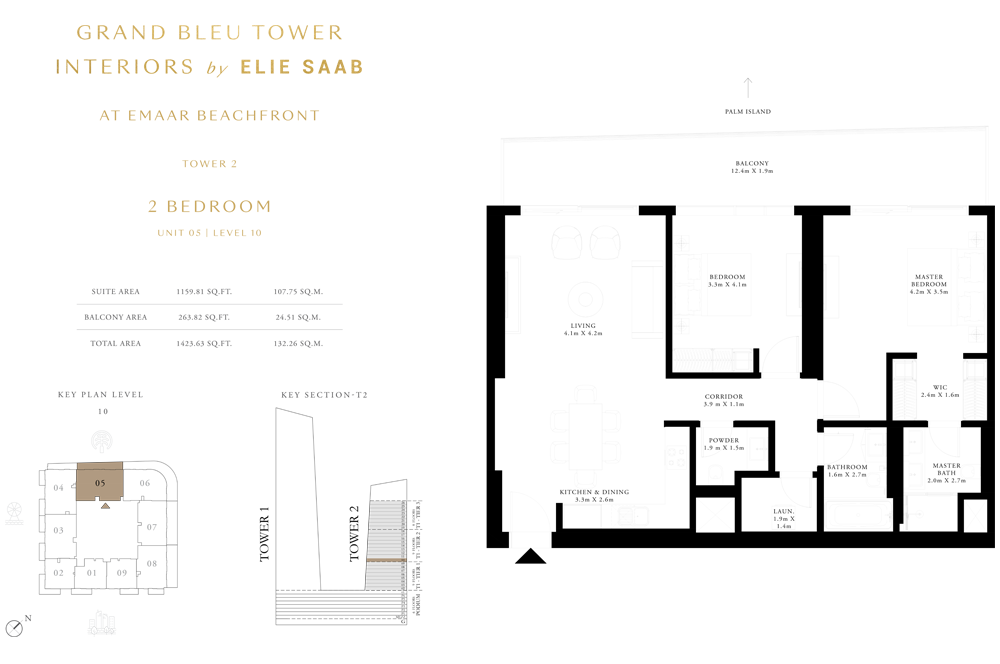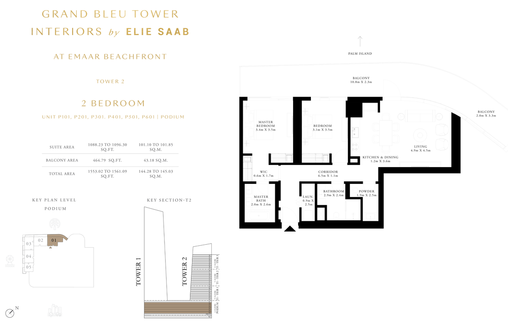 Grand Bleu Tower 2 is an exclusive residential development by Emaar Properties, located in the prestigious Dubai Harbour. This iconic tower offers a refined selection of 1, 2, and 3-bedroom luxury apartments along with spacious 4-bedroom penthouses, designed to redefine beachfront living.