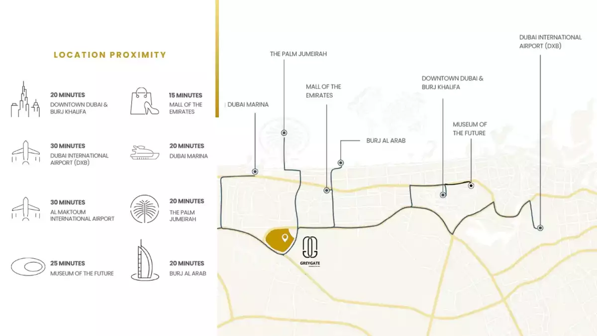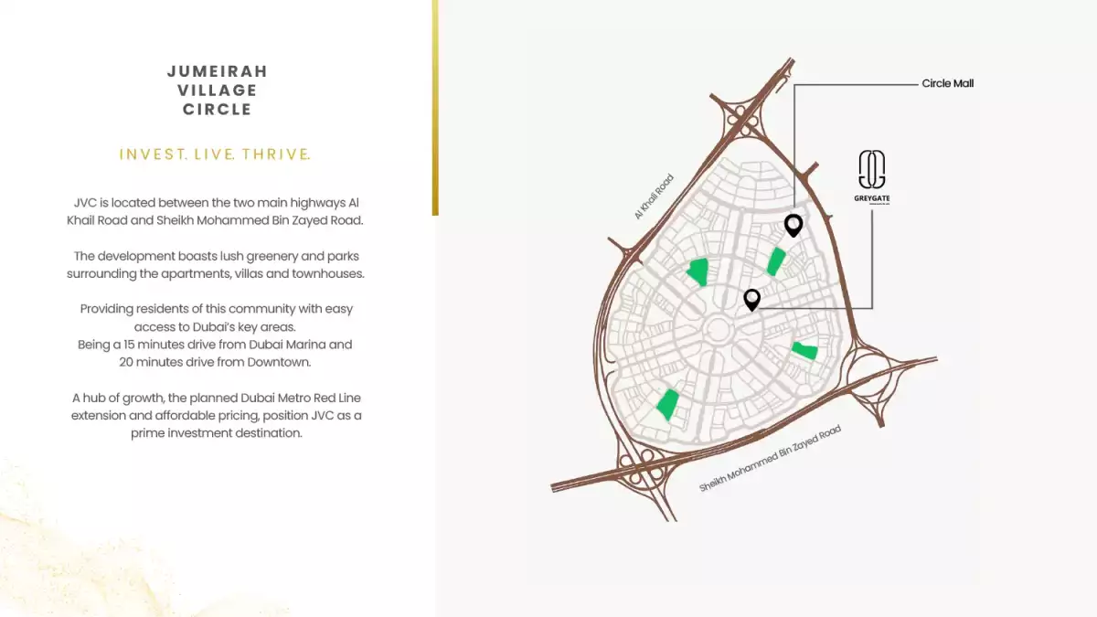 Blending sleek modern architecture with a touch of suburban tranquility, Greygate Residences creates a welcoming environment where residents can enjoy elegance, comfort, and convenience in the heart of Jumeirah Village Circle.