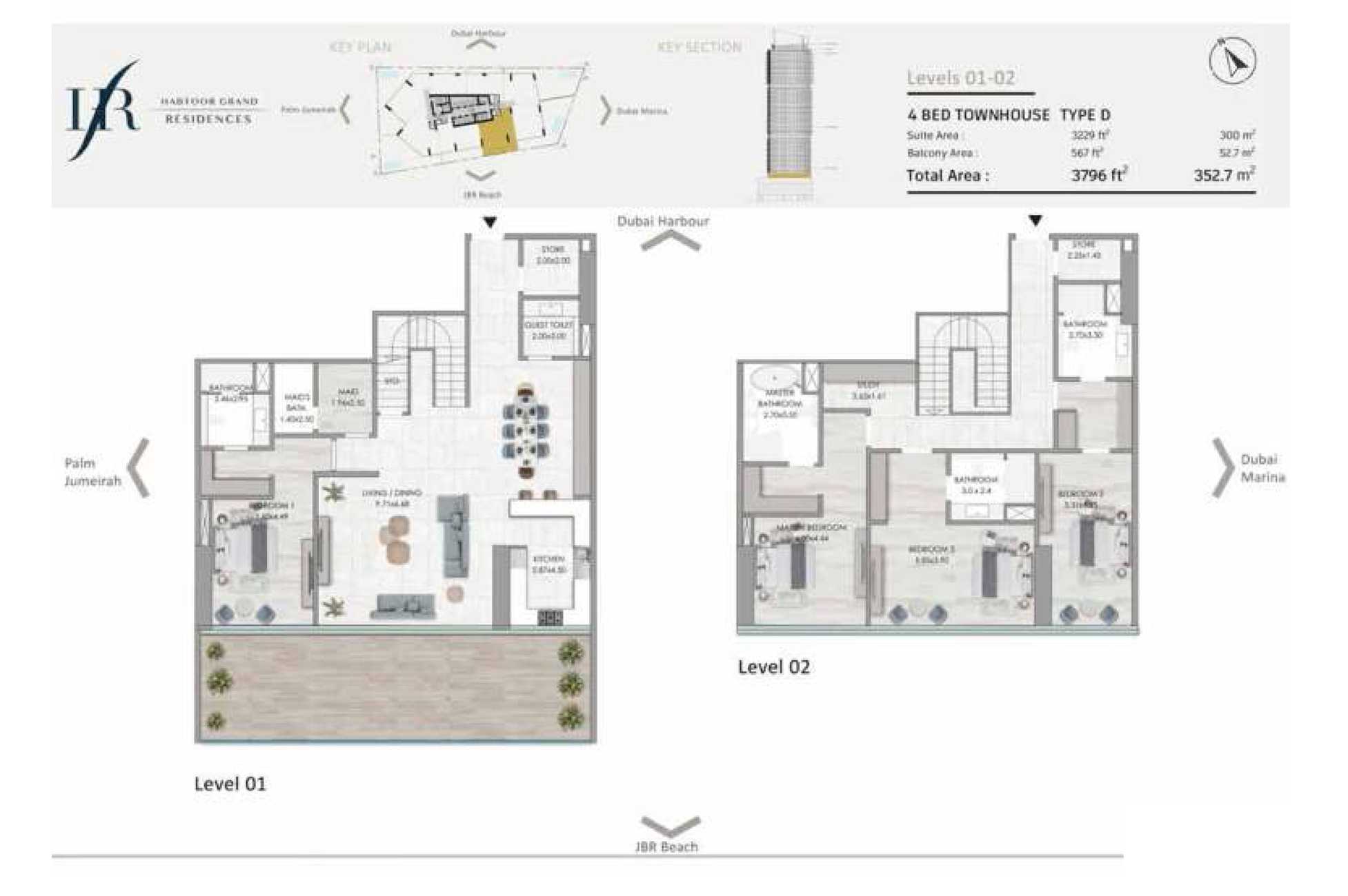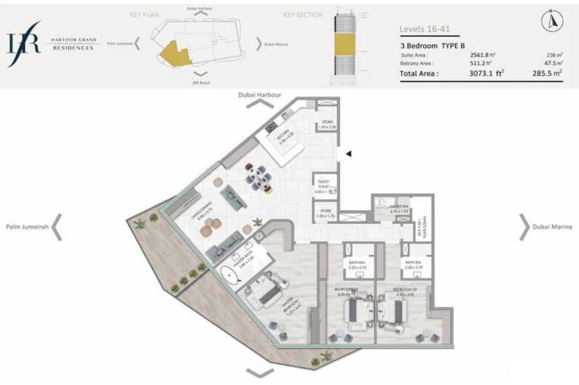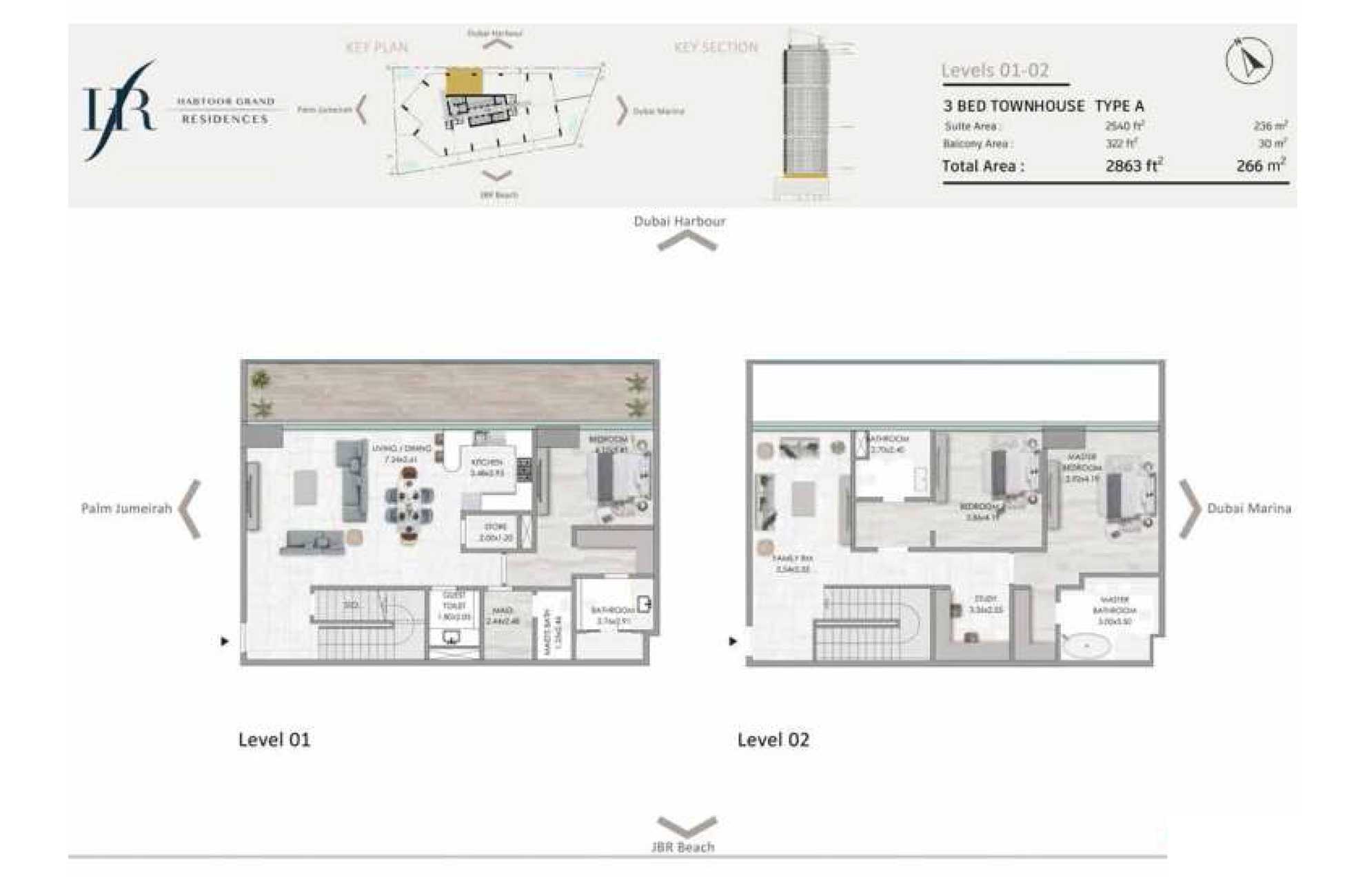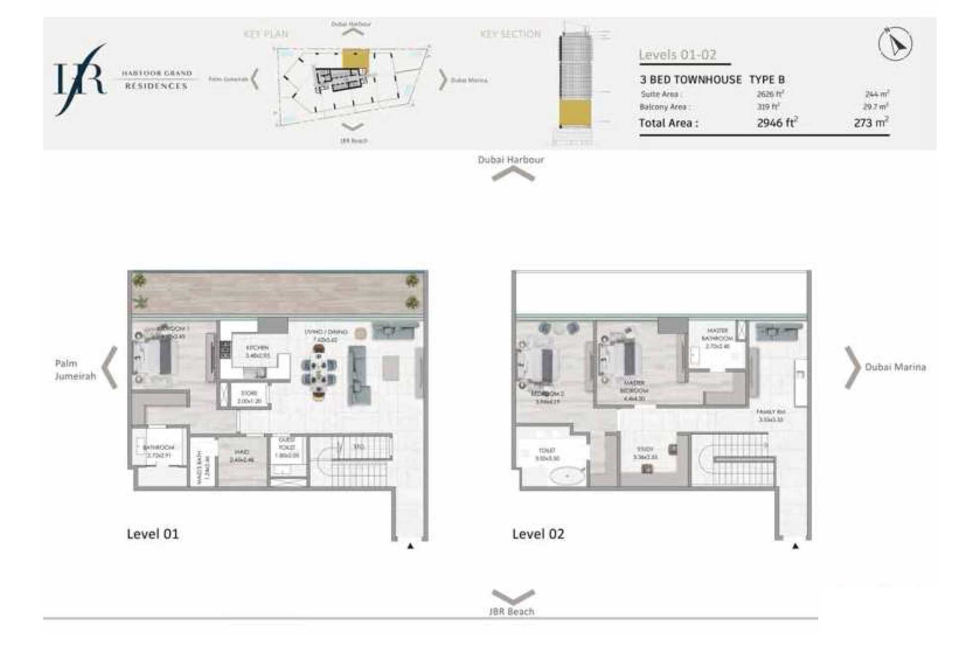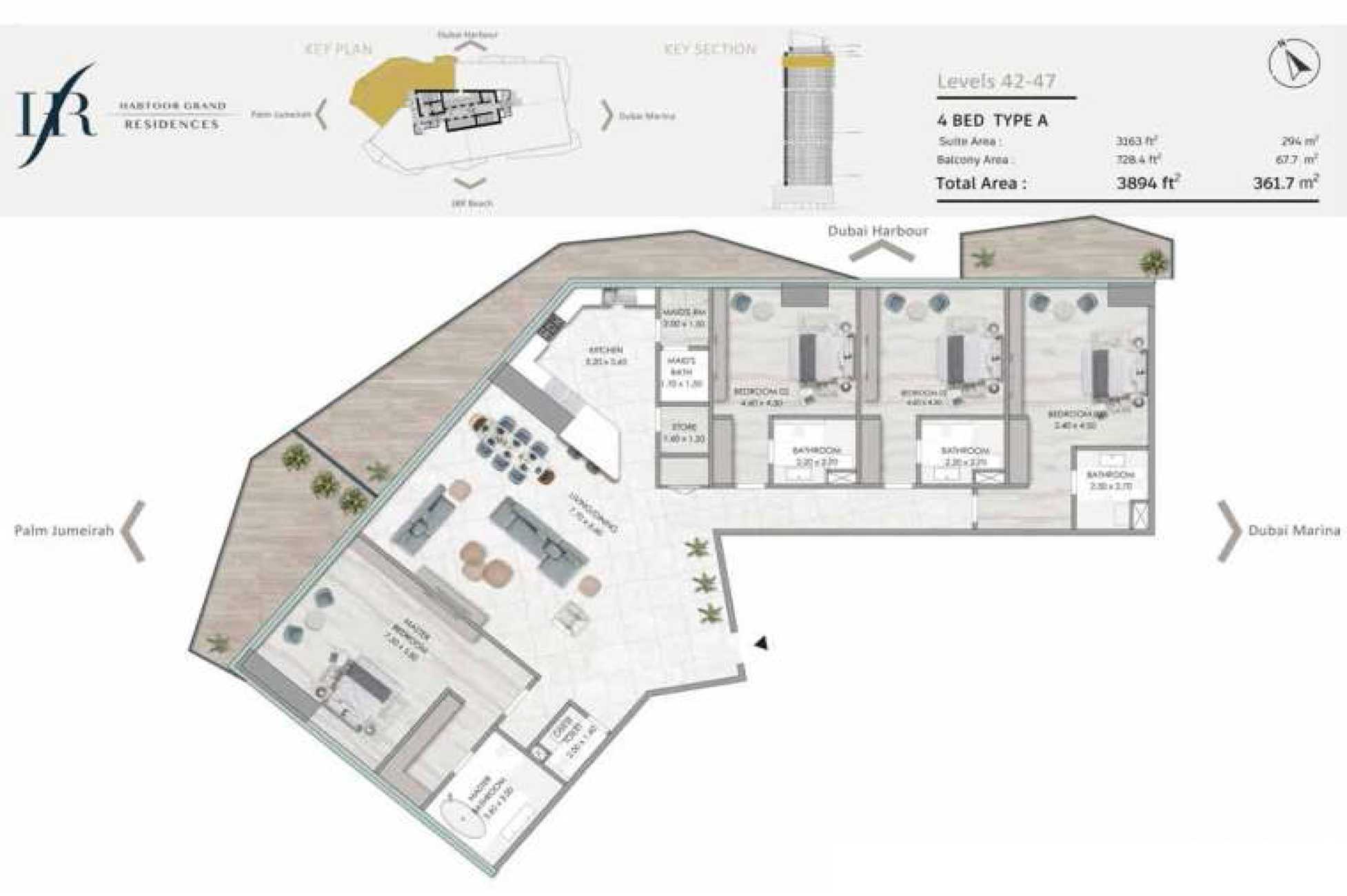 Developed by Al Habtoor Group, Habtoor Grand Residences is a G+49-story luxury residential tower redefining sumptuous living with 2 to 4-bedroom flats, townhouses, and penthouses in the center of Jumeirah Beach, Dubai Marina. Every apartment in this tall building has an amazing view of the Gulf and Dubai Marina, providing tenants with an unmatched waterfront experience every morning.