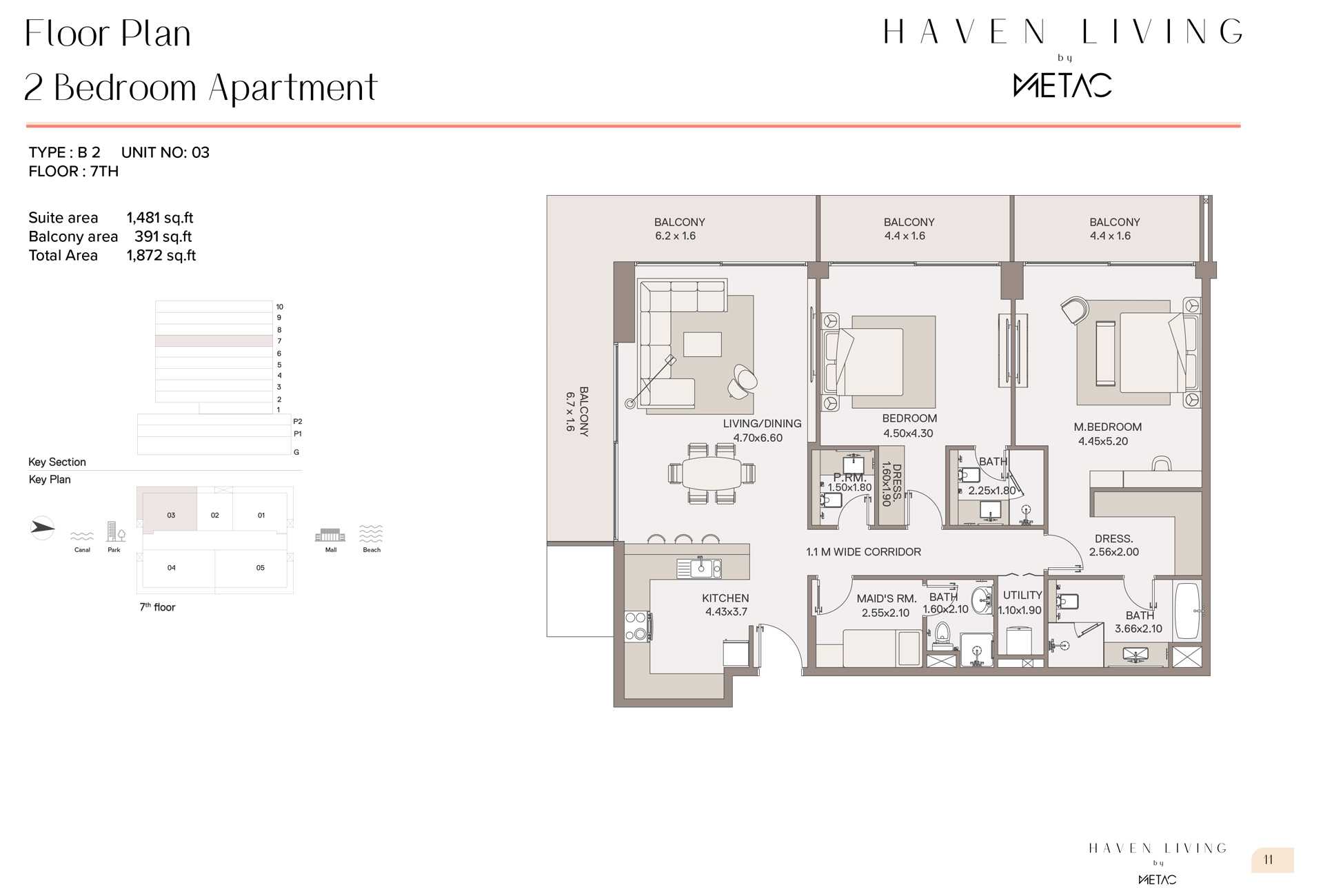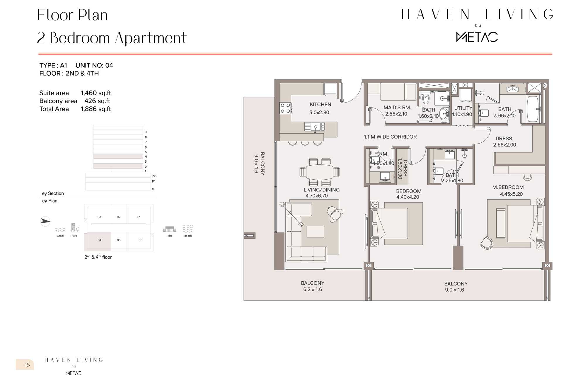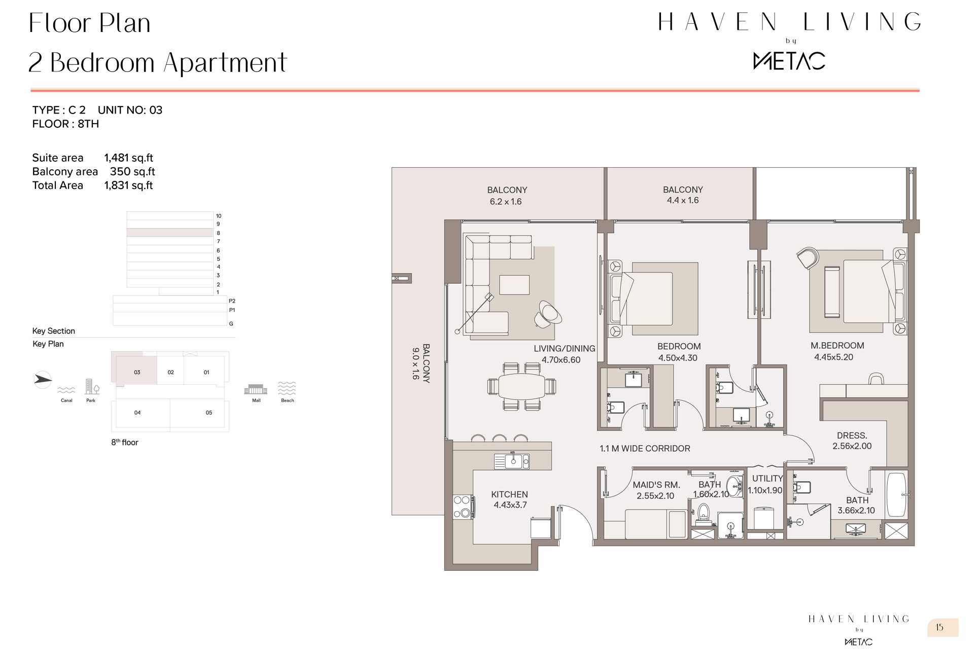 With its luxurious 1, 2, 3, and 4-bedroom apartments, Metac's latest development, Haven Living at Dubai Island, offers an unparalleled living experience. In the center of a bustling downtown, the G+2P+10 story residential structure offers residents warmth and comfort thanks to its exquisite attention to detail, which embodies modern sophistication and timeless elegance.