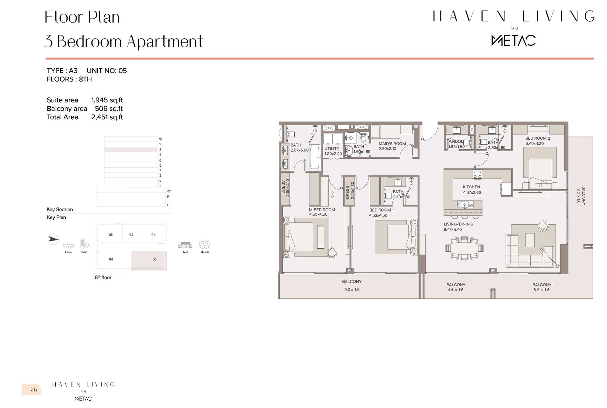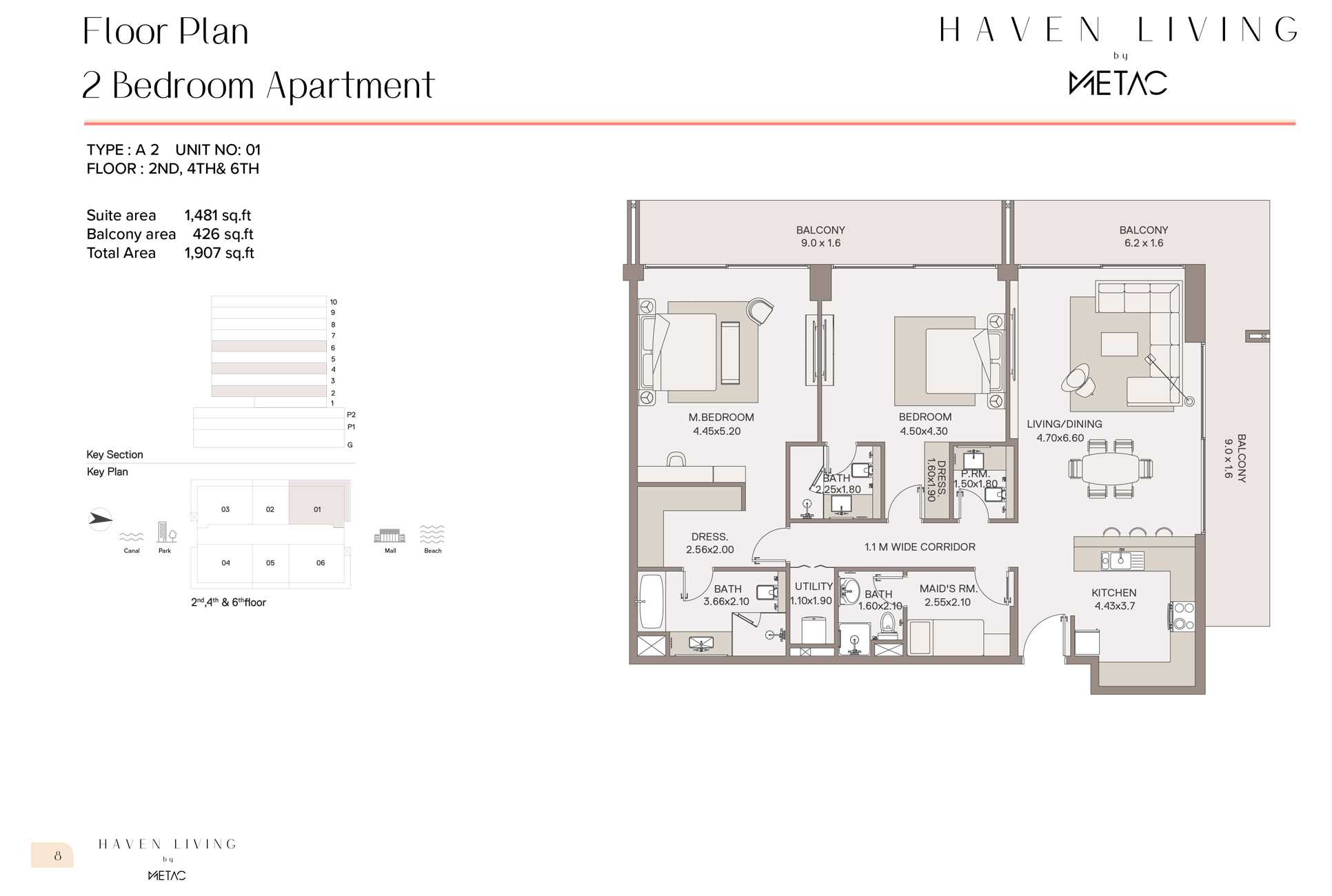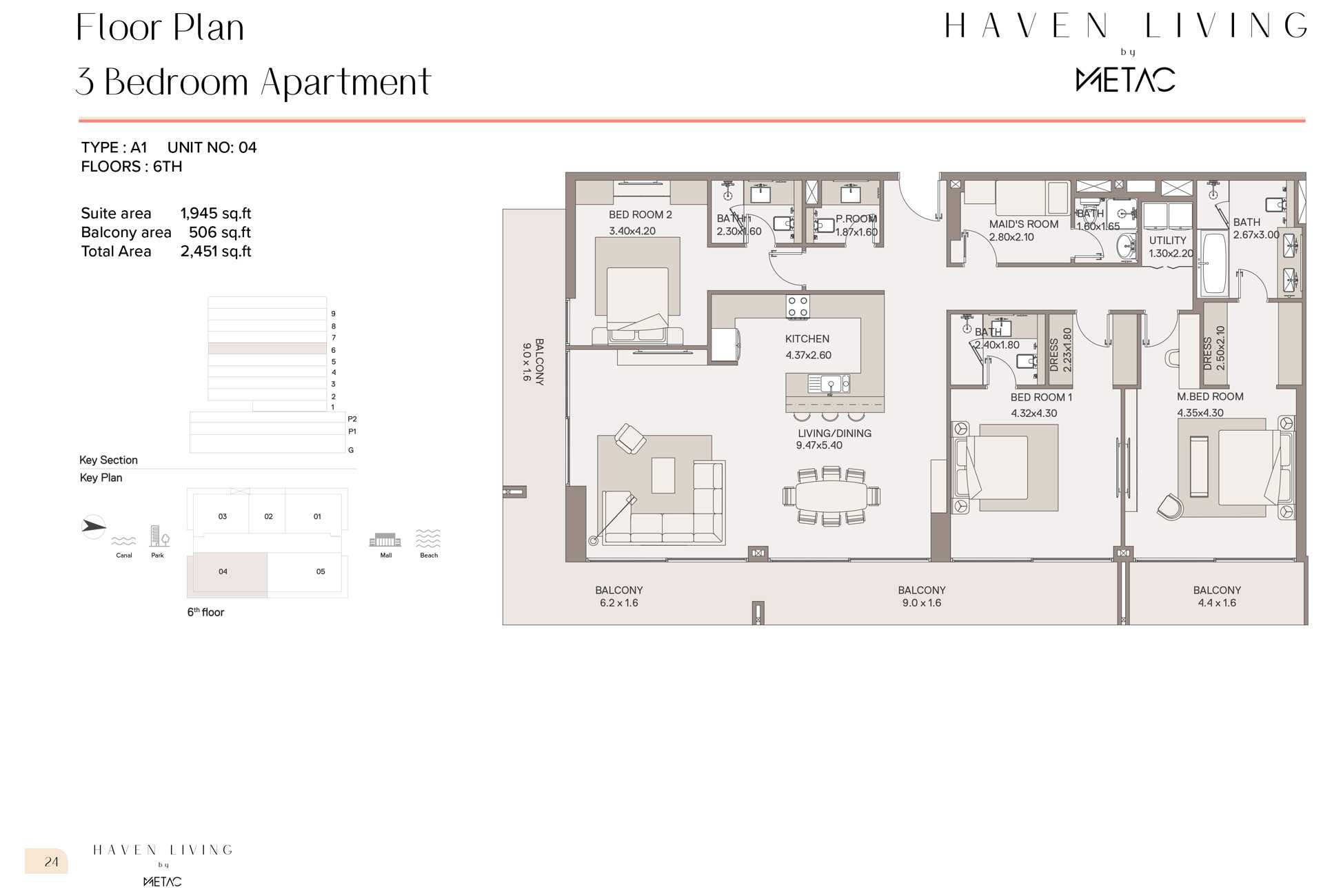 With its luxurious 1, 2, 3, and 4-bedroom apartments, Metac's latest development, Haven Living at Dubai Island, offers an unparalleled living experience. In the center of a bustling downtown, the G+2P+10 story residential structure offers residents warmth and comfort thanks to its exquisite attention to detail, which embodies modern sophistication and timeless elegance.