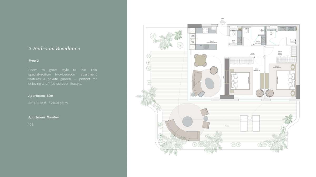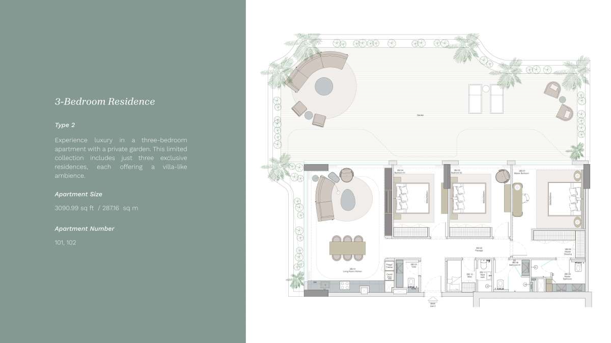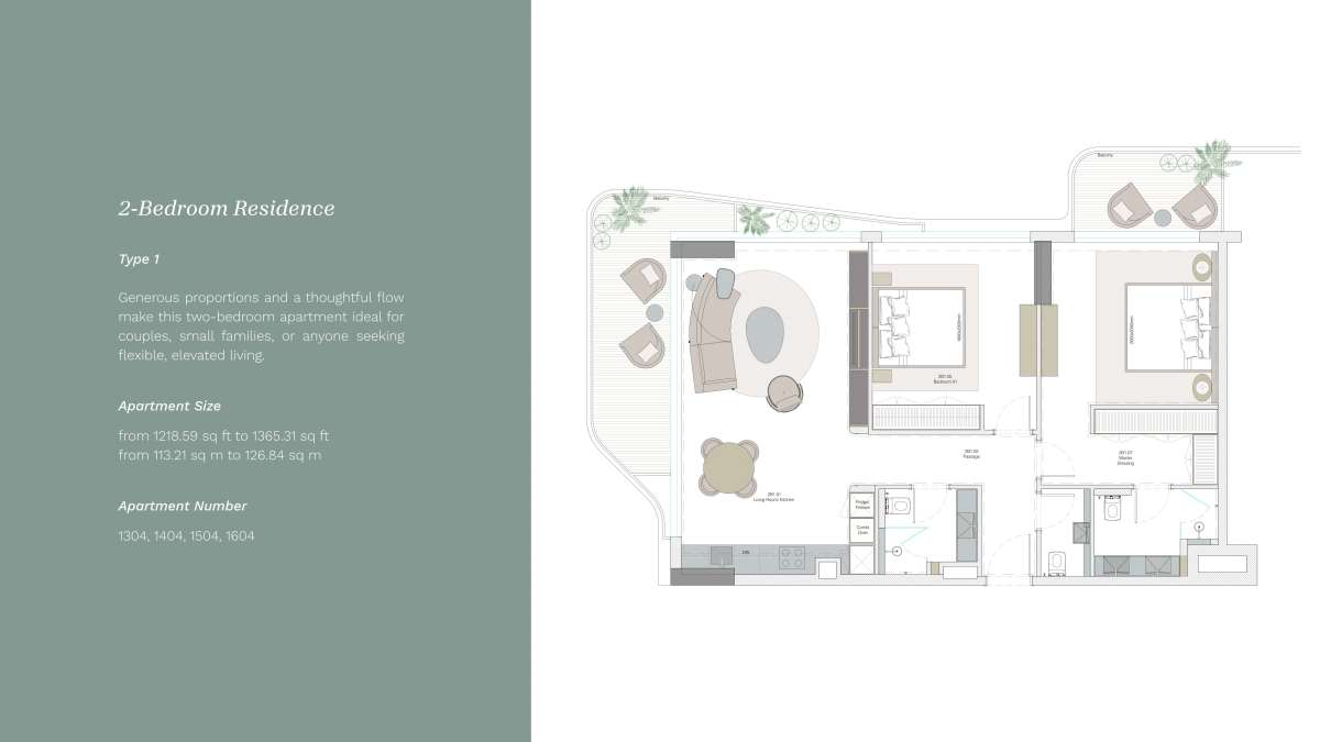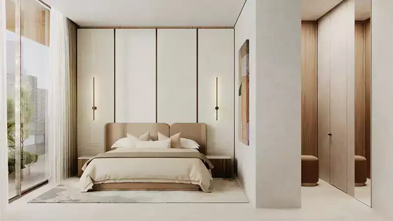 Natural light floods interiors thanks to large windows and spacious terraces. Every home has a sense of balance and sophistication thanks to soft, neutral colors, exquisite materials, and well-considered design. For those who want more, apartments with private gardens and top-floor views offer an exceptional lifestyle.