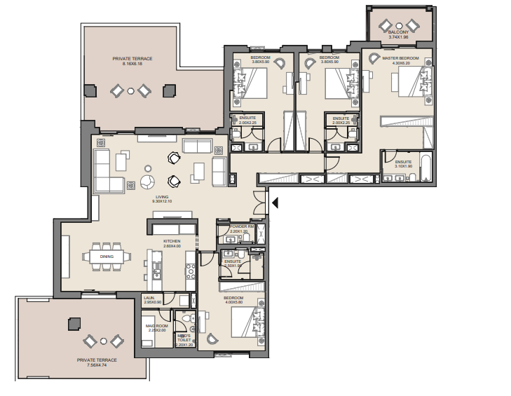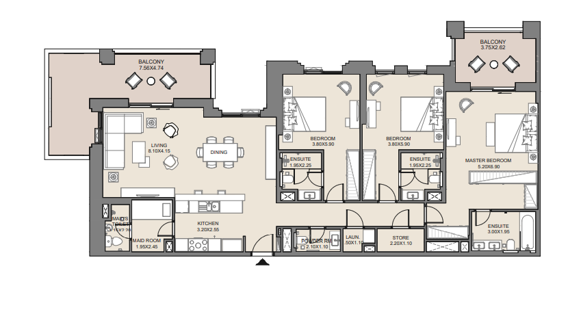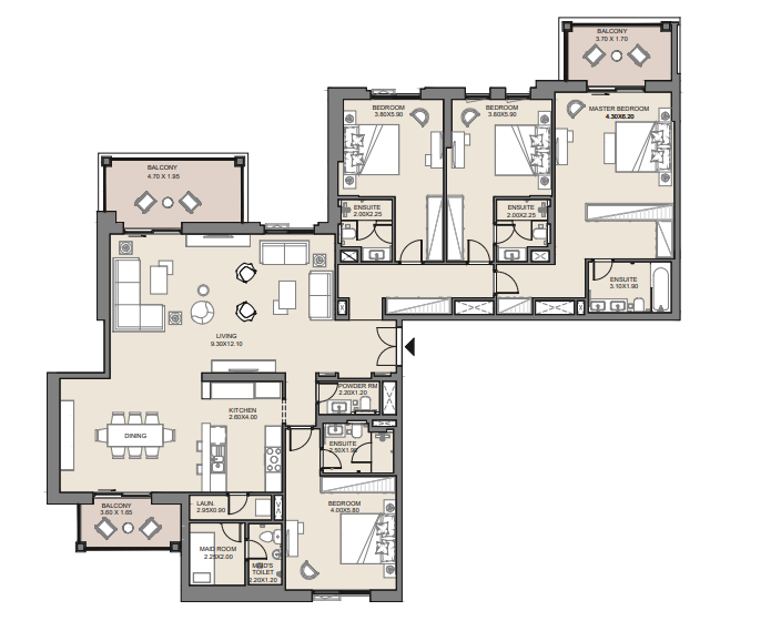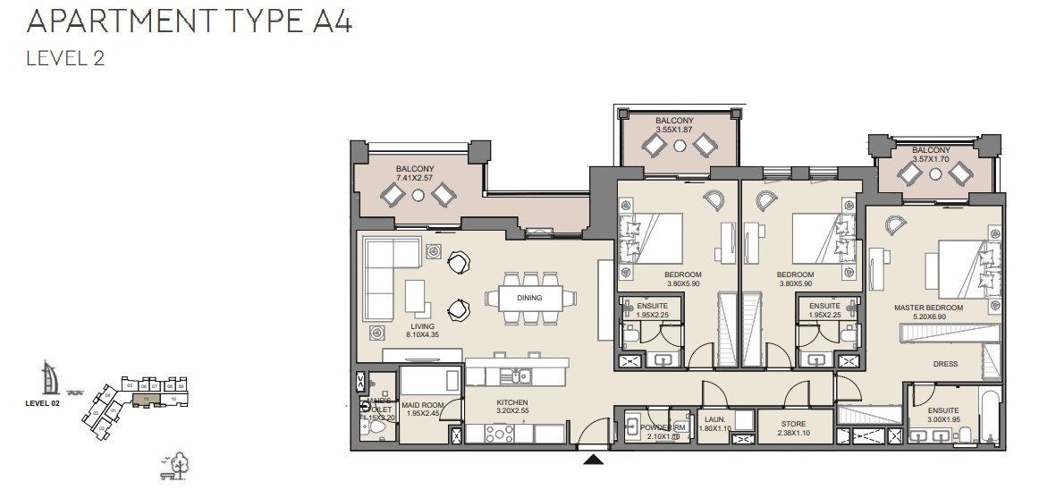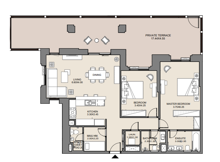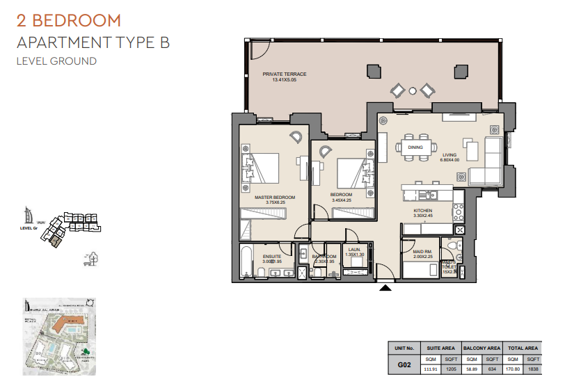2 BR Apartment has: