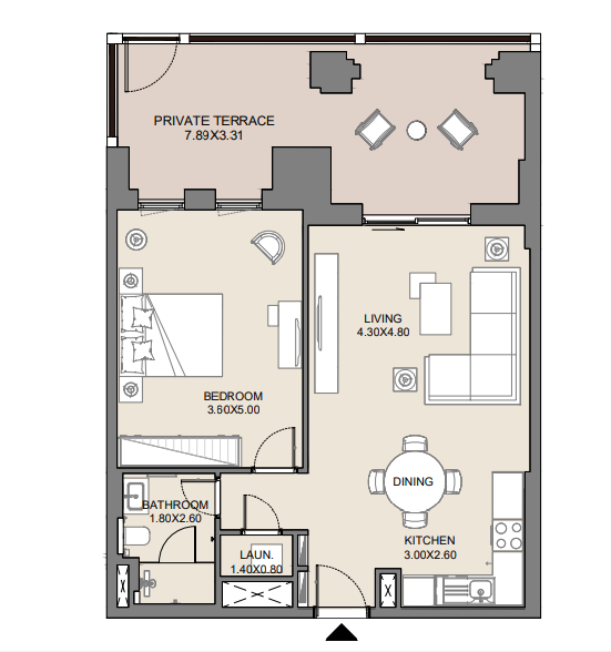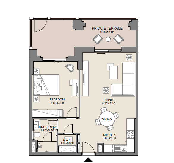 1BR Apartment has: