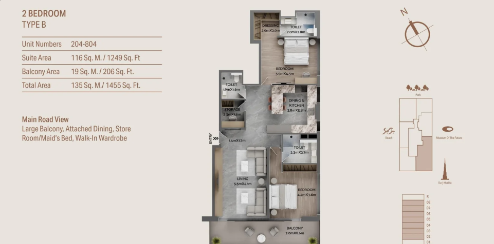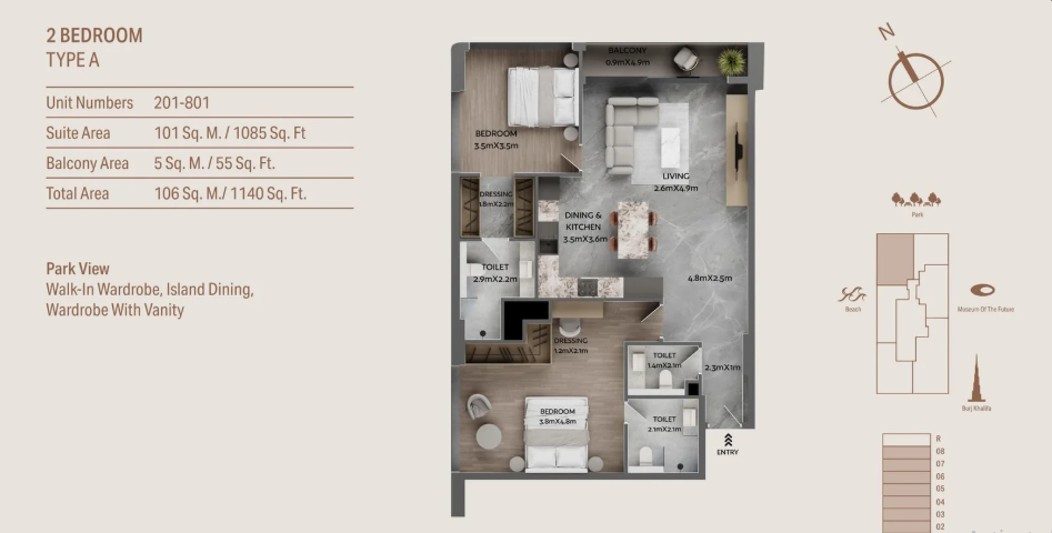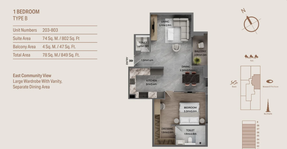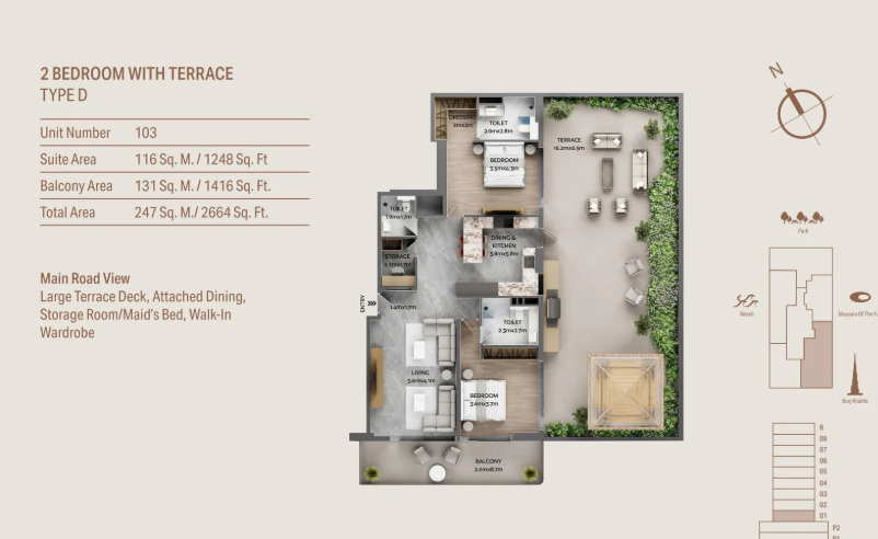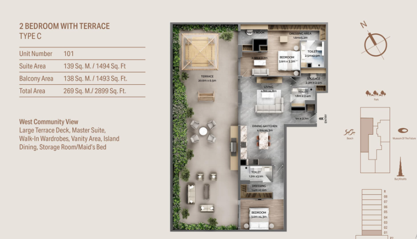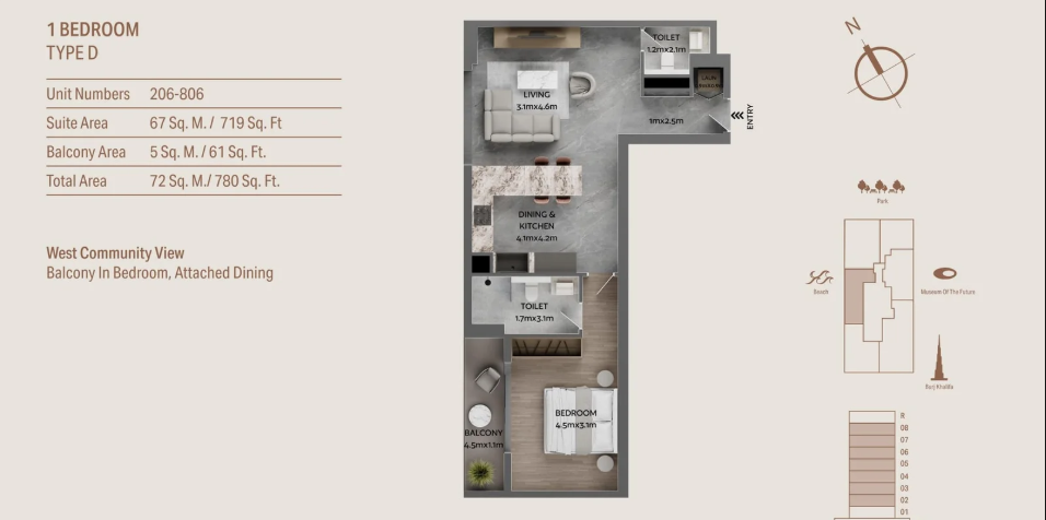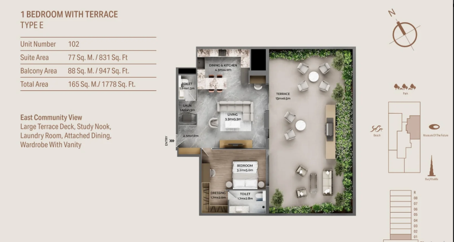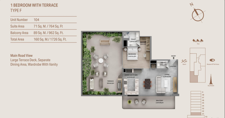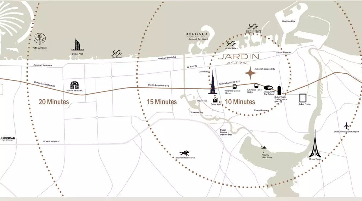 Perfectly located in the centre of Dubai, residents enjoy unrivalled connectivity to key destinations including Downtown Dubai, City Walk, Jumeirah Beach, the World Trade Centre, and Dubai International Airport. The development is integrated into the walkable, green landscape of Jumeirah Garden City—offering an oasis of tranquility amid urban vibrancy.