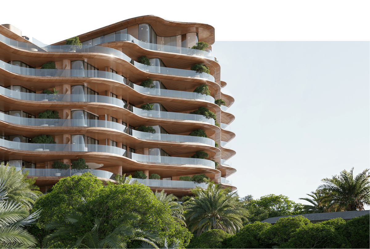Breaking away from the vertical skyline of Dubai, Asora Bay introduces a design philosophy inspired by the land itself. Sculpted between two gently rising hills, the development flows naturally from the earth—its organic form echoing the movement of sand dunes and the rhythm of ocean waves.
