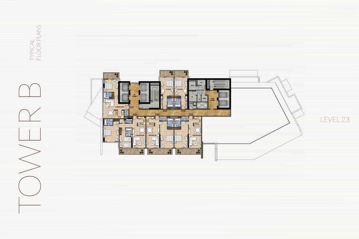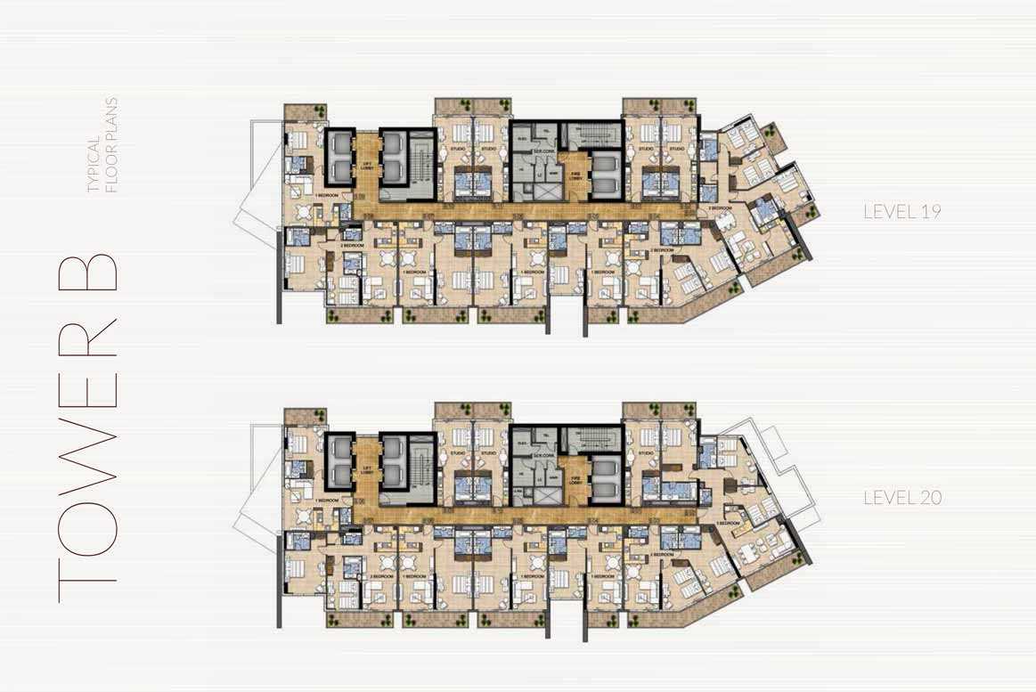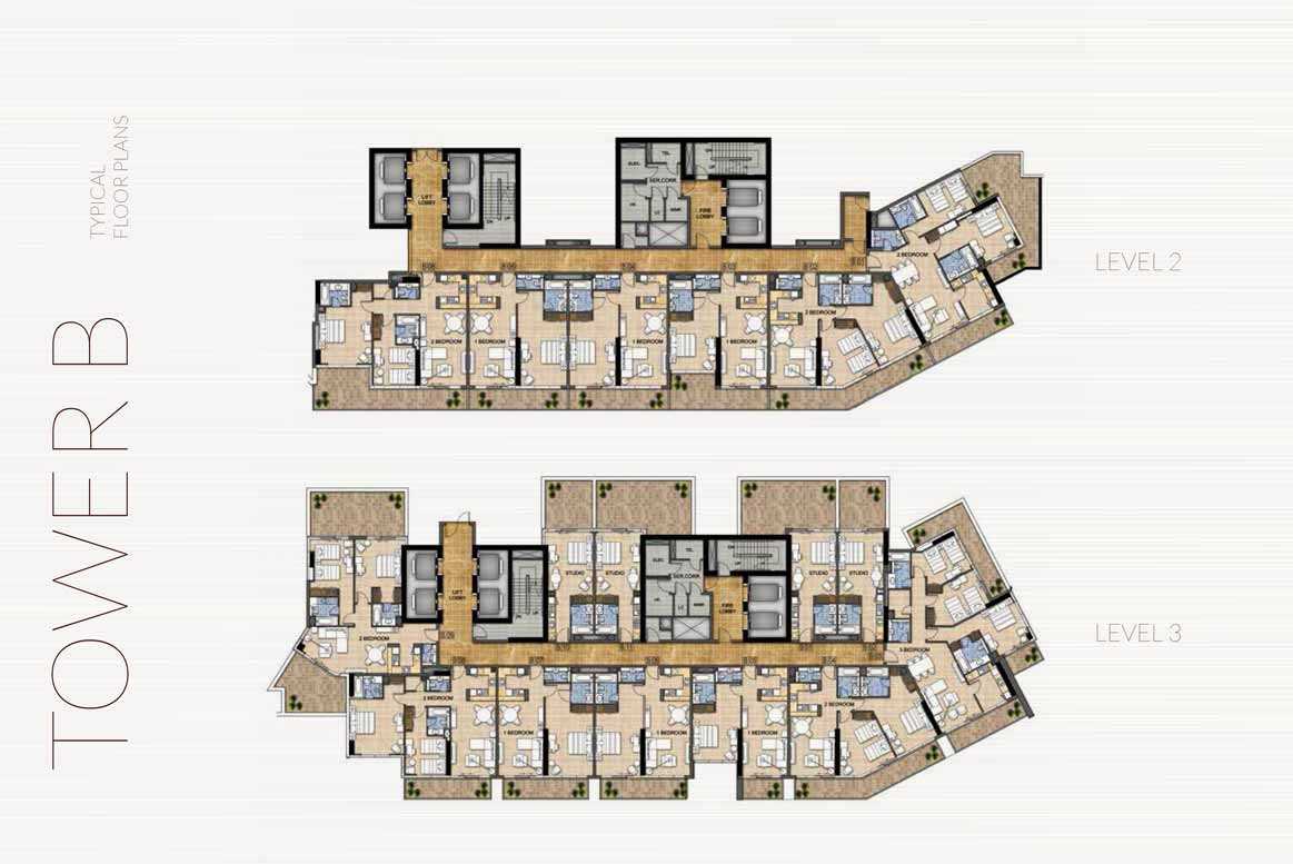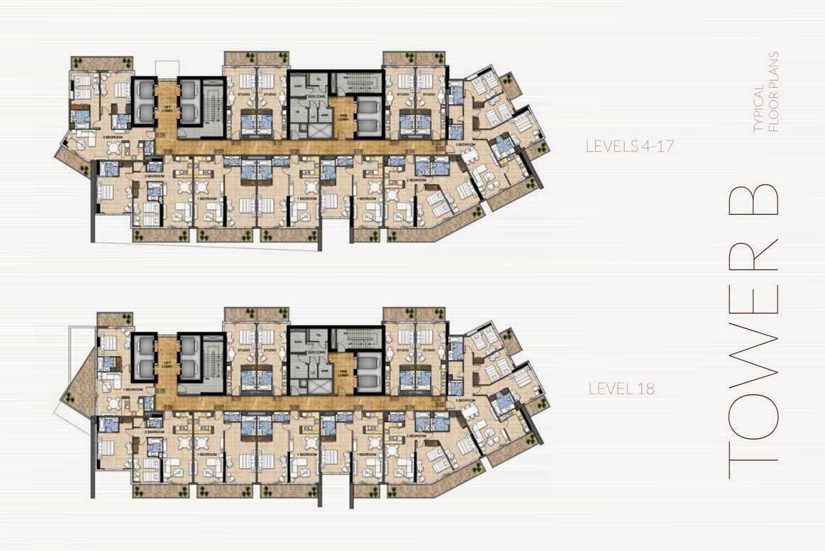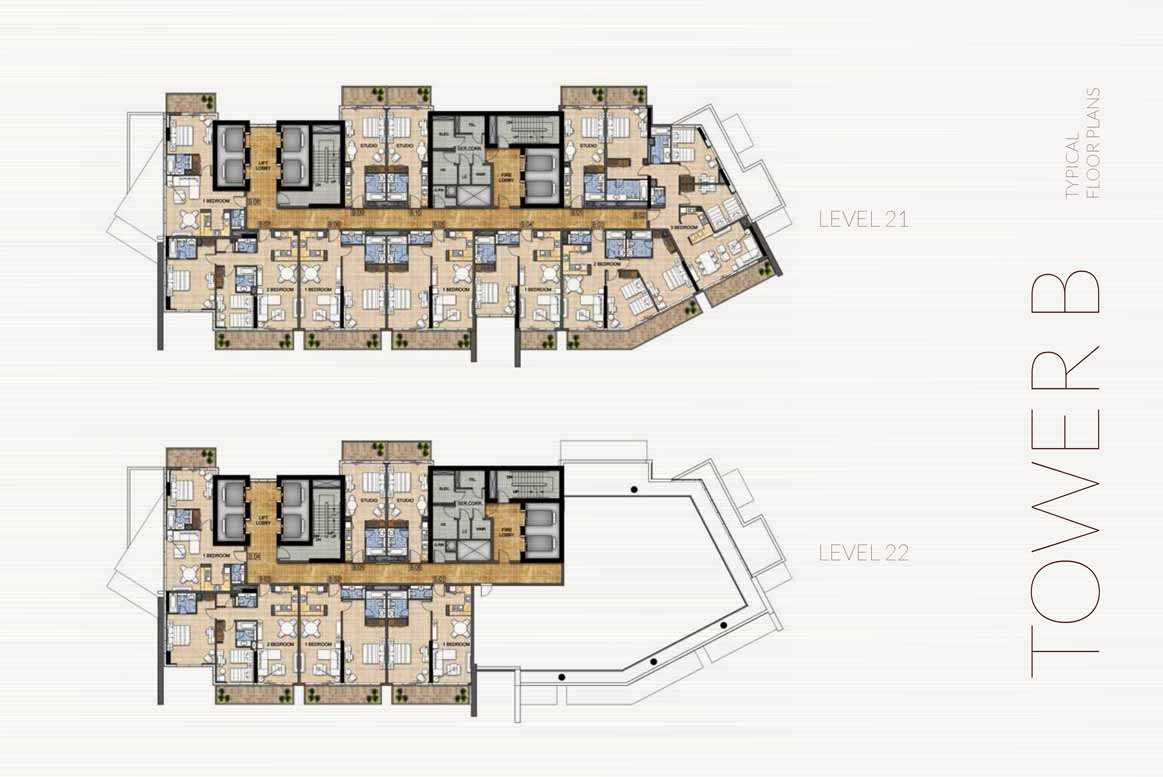 Luxury studios, one-, two-, and three-bedroom apartments in a range of sizes and configurations are all furnished in each building. The structures have views over Dubai's Trump International Golf Club. The studios and apartments have fully tiled bathrooms, balconies, built-in wardrobes in the bedrooms, en-suites, and guest toilets where necessary. The master bathrooms have showers or bathtubs with showers, vanity units, and mirrors. Central air conditioning, double-glazed windows, cable and telephone connections, and high-speed internet access are also included.