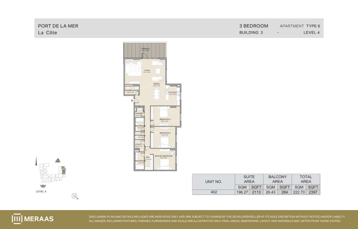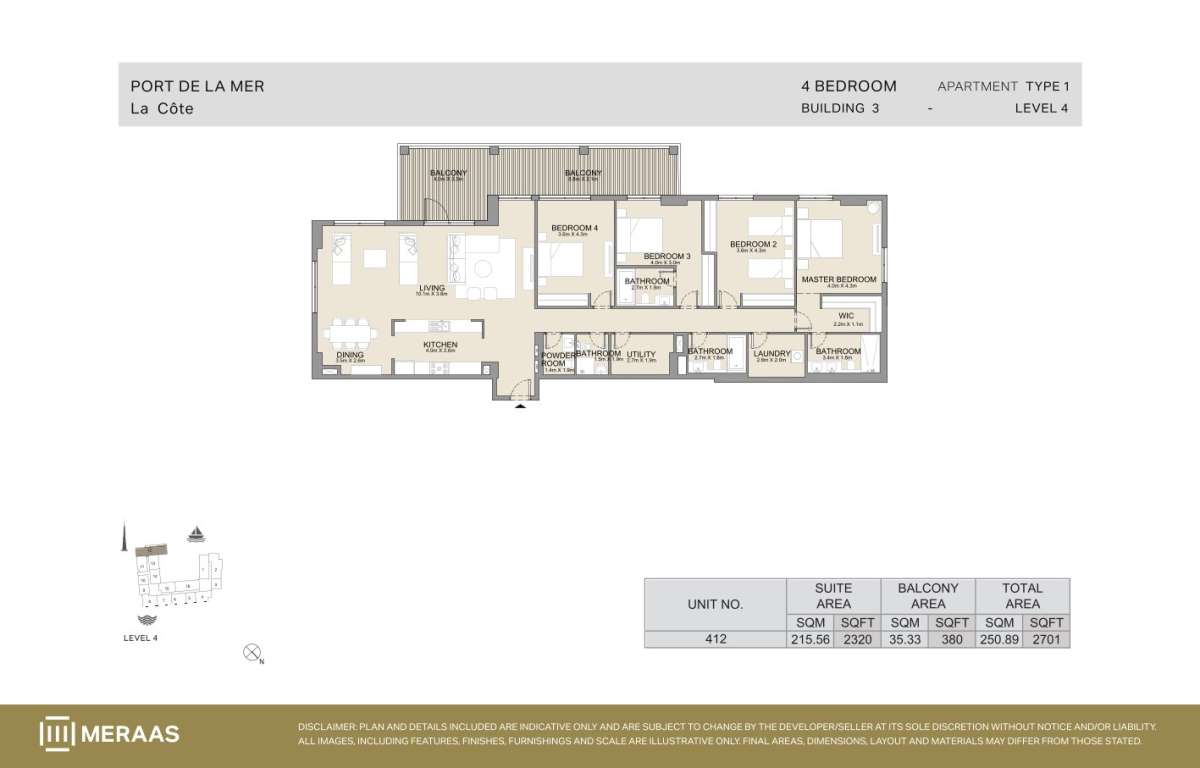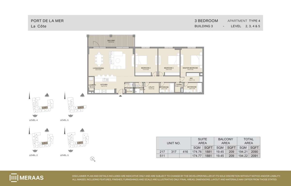 La Cote Building 3 offers 4-BHK apartments, which include: Features: