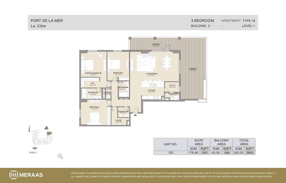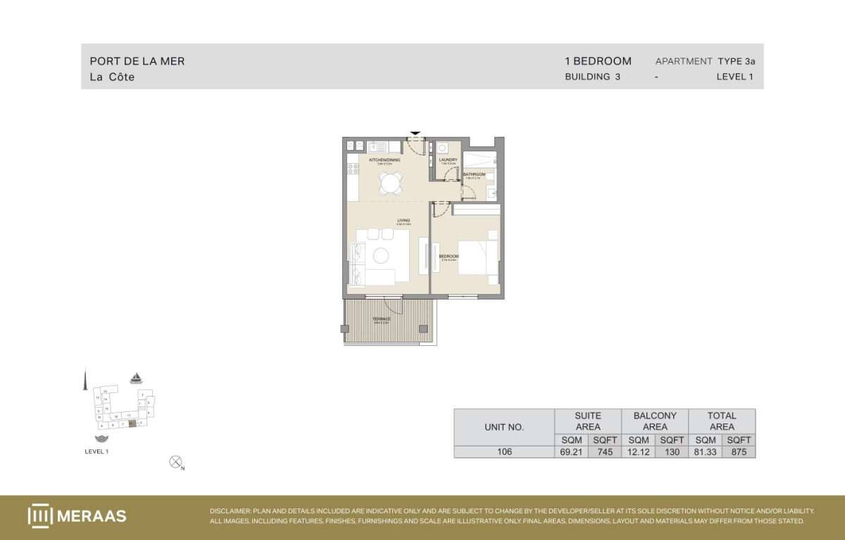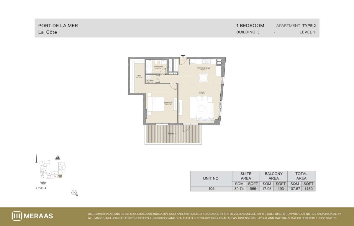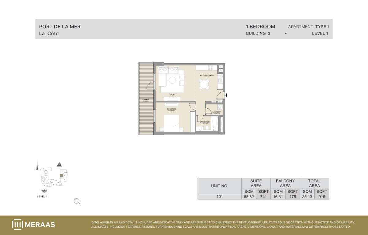 La Cote Building 3 offers 1-BHK apartments, which include: Features: