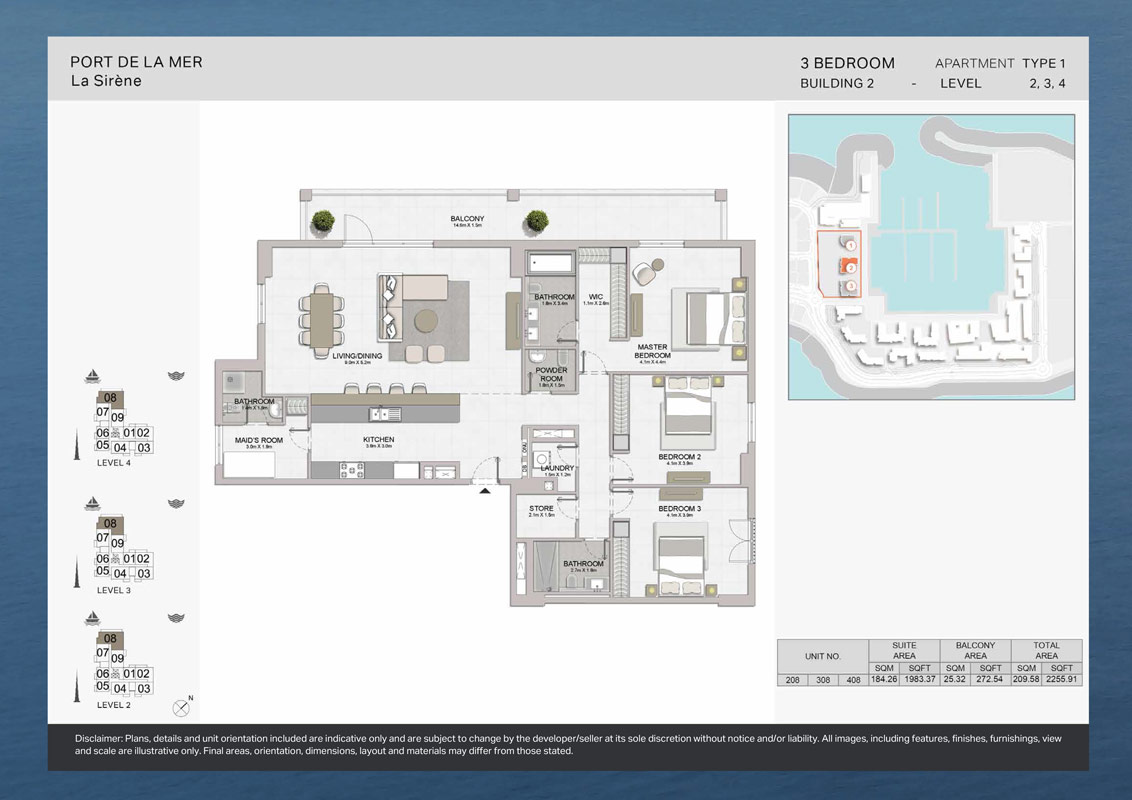 Perfectly positioned along the city’s pristine coastline, La Sirene Building 2 captures the essence of coastal living—where the sea meets the sky, and luxury meets tranquility. The architecture combines vintage aesthetics with modern design sensibilities, while interiors are crafted to reflect light, space, and comfort in every detail. Expansive windows and private balconies open up to spectacular views of the marina, the open sea, and the Dubai skyline.