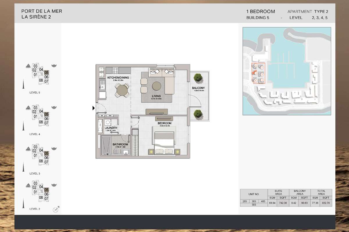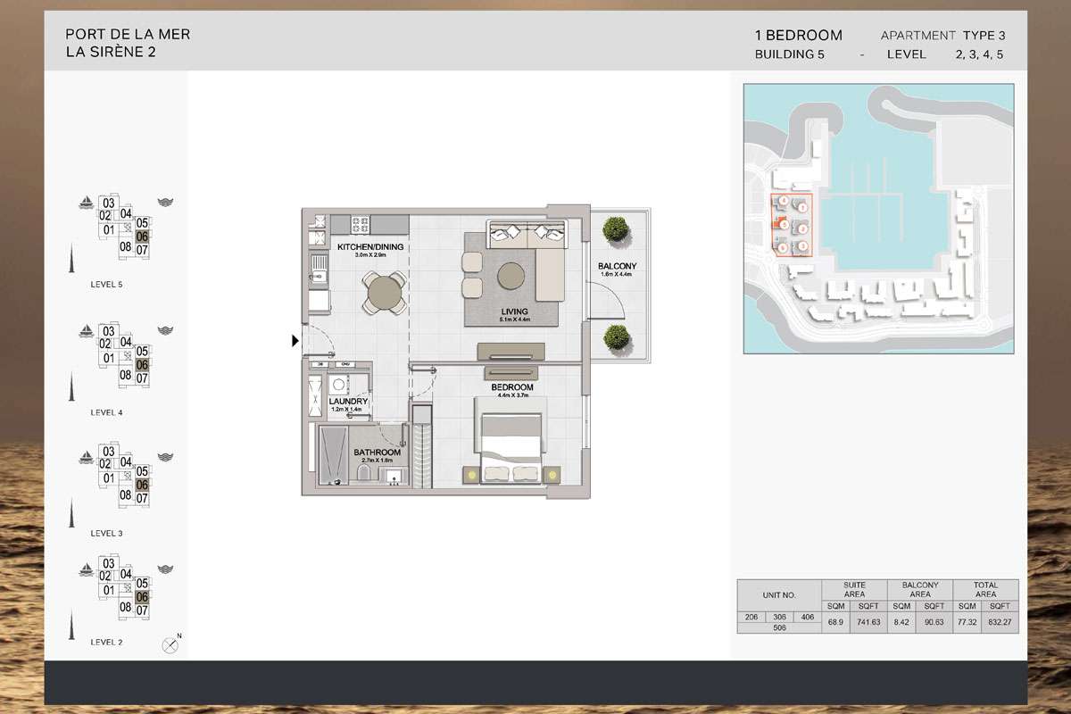 Blending vintage architectural charm with modern interior finishes, La Sirene 2 – Building 5 captures the essence of refined seaside living. Each residence is designed to maximize space, natural light, and breathtaking vistas of the marina and the Arabian Gulf.