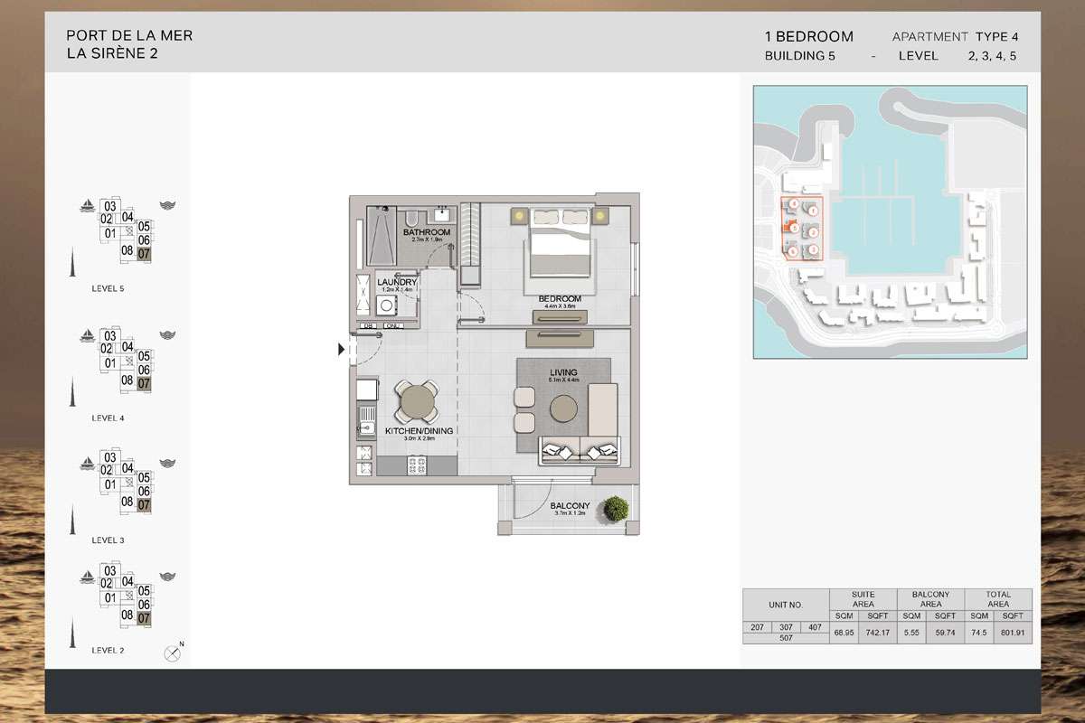 La Sirene 2 – Building 5 by Meraas is the newest addition to the prestigious Port de La Mer community in Jumeirah 1, Dubai, featuring an exclusive collection of 1, 2, and 3-bedroom freehold waterfront apartments. Inspired by the Mediterranean seaside lifestyle, this elegant development offers residents panoramic views of the open water and the Dubai skyline, along with a relaxed coastal ambiance and sophisticated design.