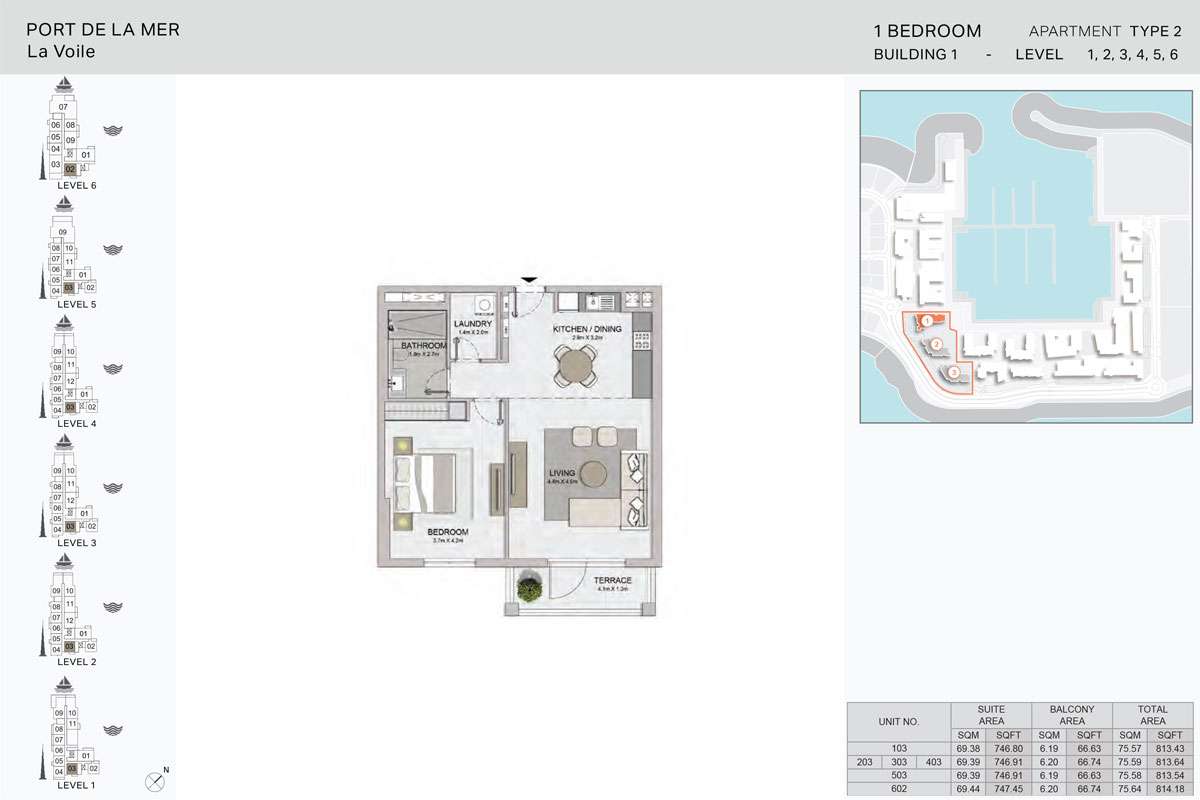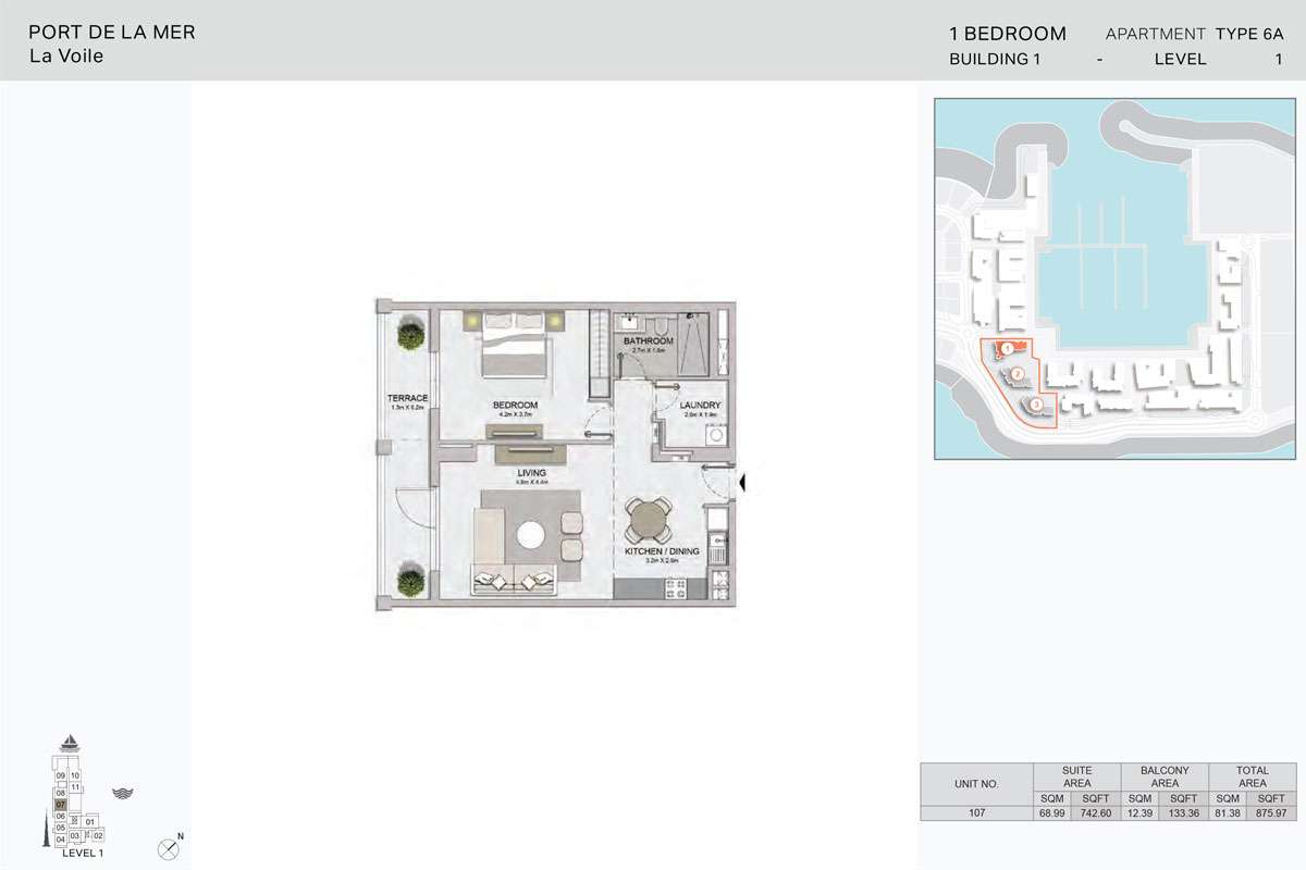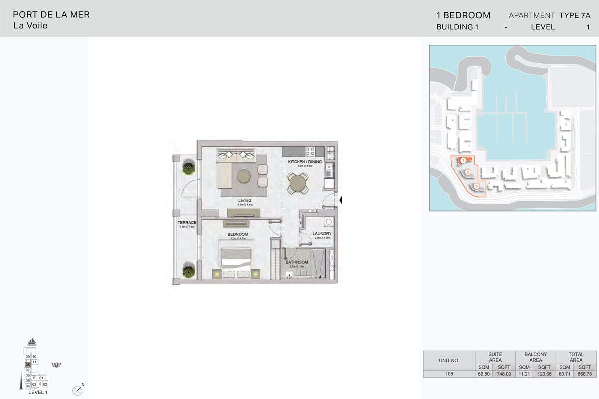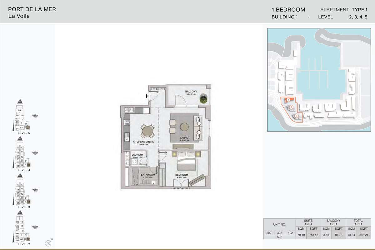 La Voile Building 1 offers 1-BHK apartments, which include: Balcony Bedroom Bathroom Kitchen/Dining Living Laundry
