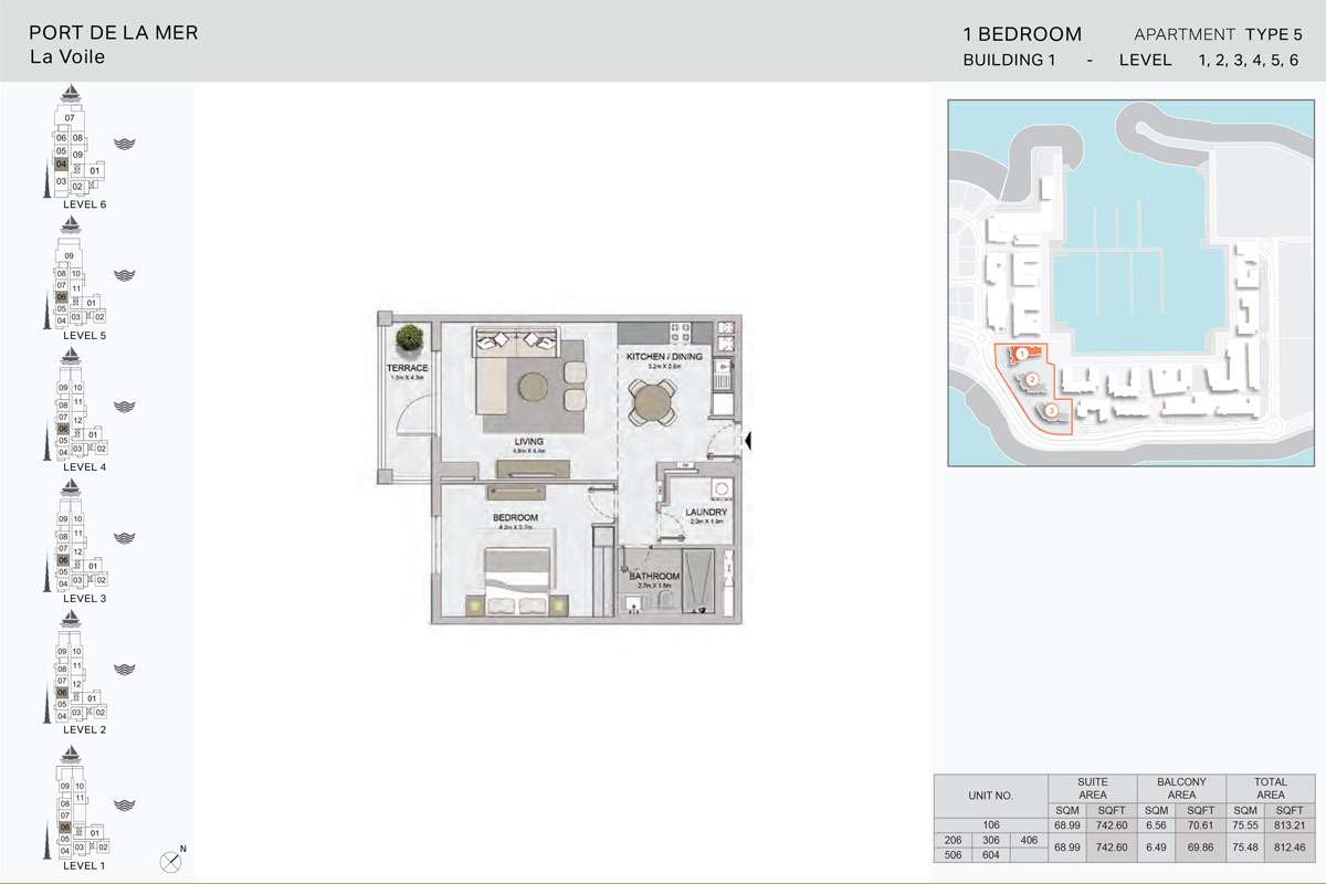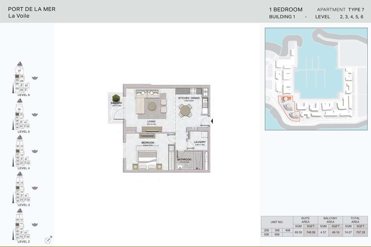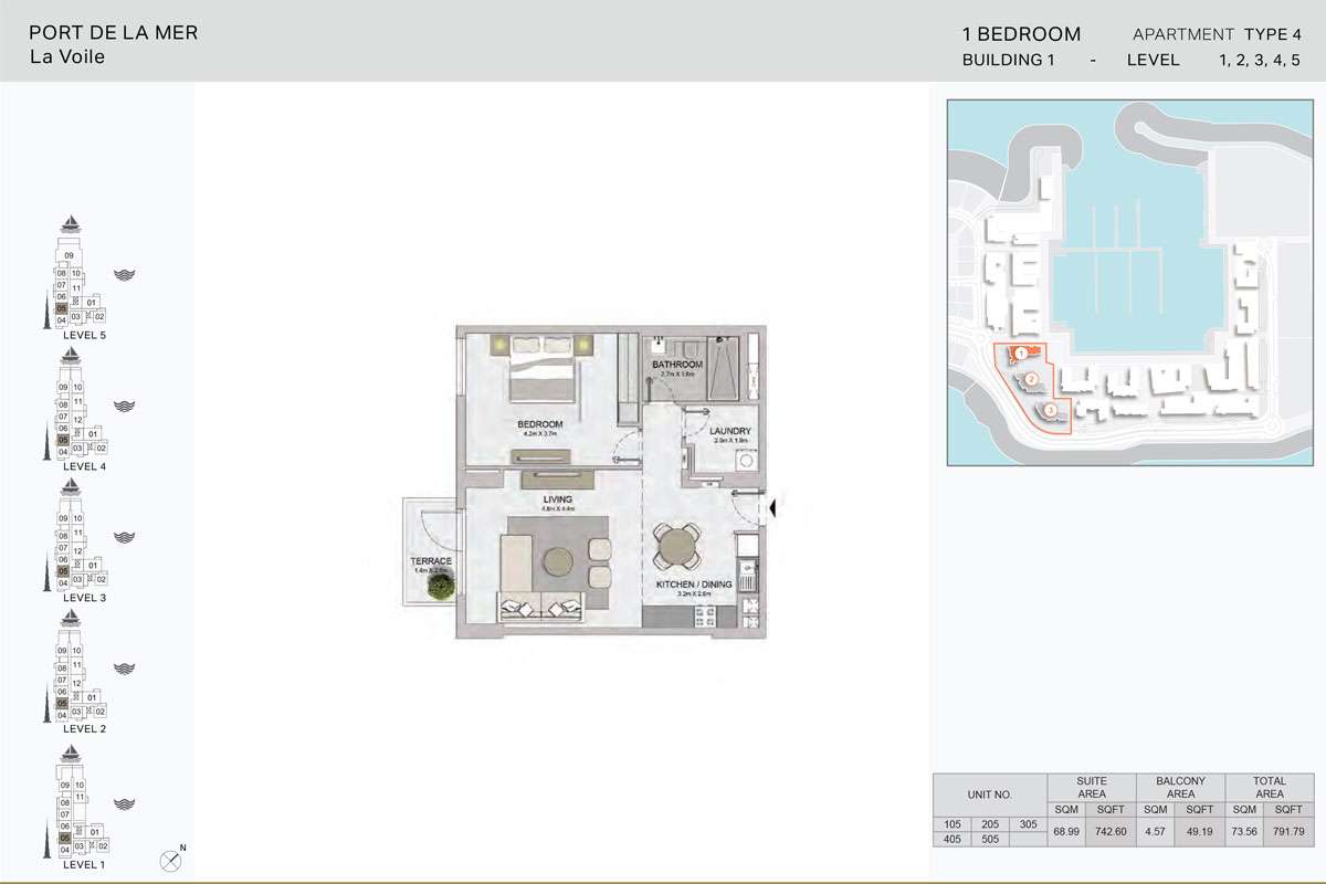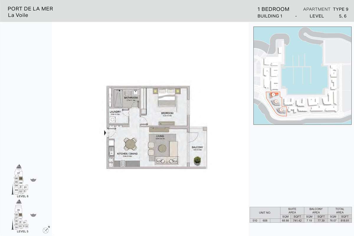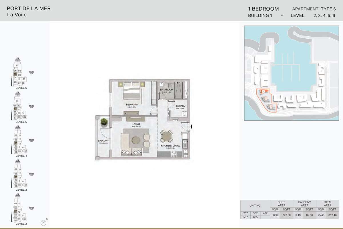La Voile Building 1 offers 1-BHK apartments, which include: Balcony Bedroom Bathroom Kitchen/Dining Living Laundry