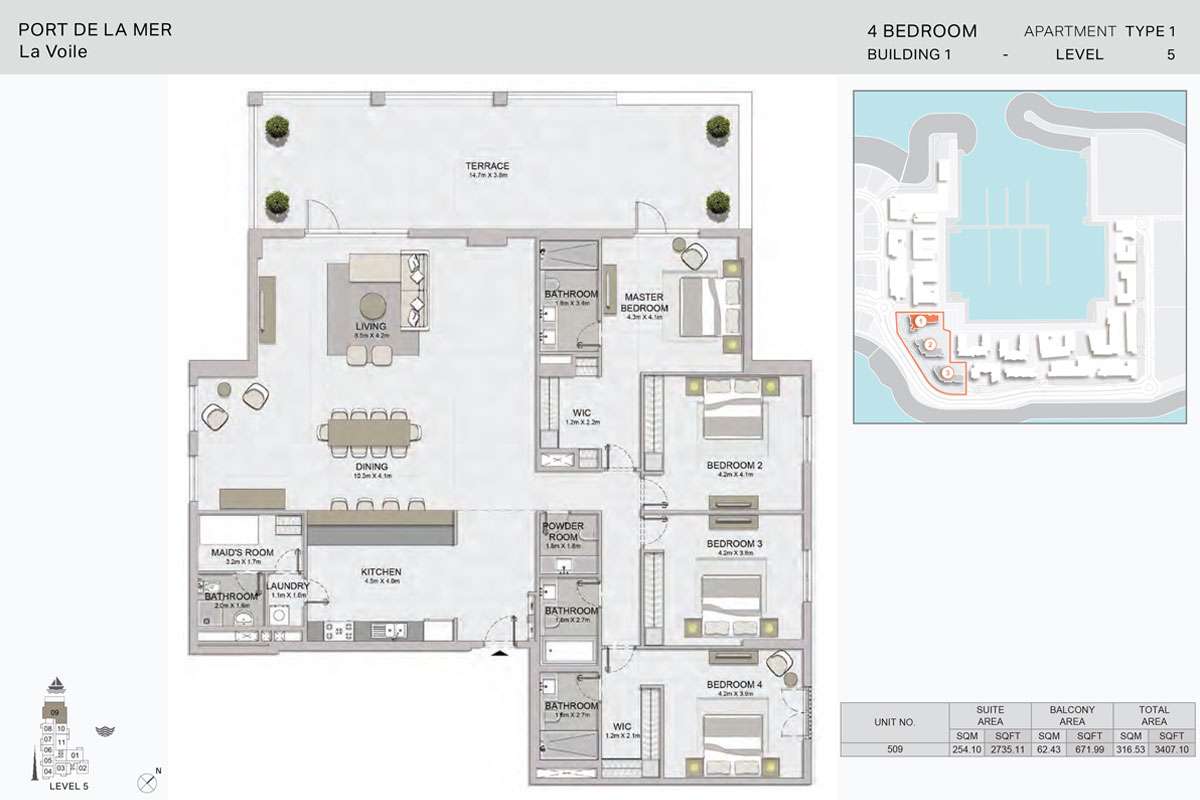 La Voile Building 1 offers 4-BHK apartments, which include: