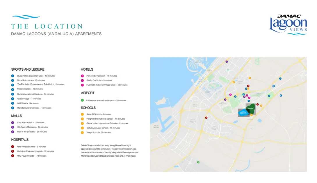 - Damac Lagoons, a master community in Dubai, is 45 million square feet in size and creates a private sanctuary inspired by the alluring allure of the Mediterranean.