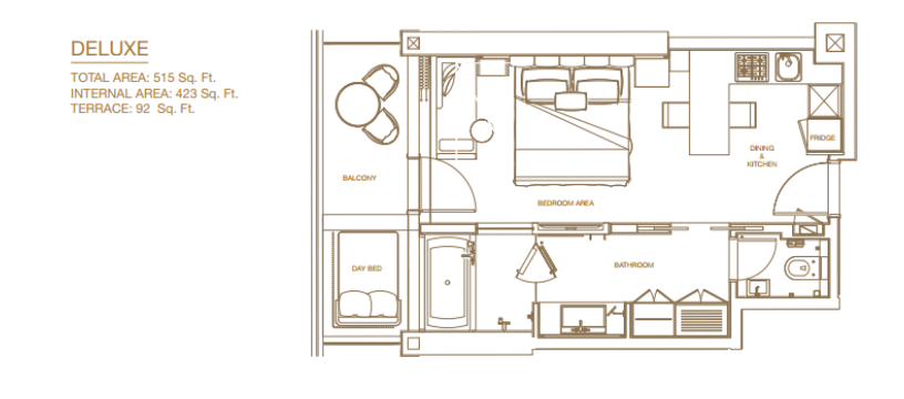 There are multiple restaurants and a roof-top bar with canal and Burj Khalifa views.