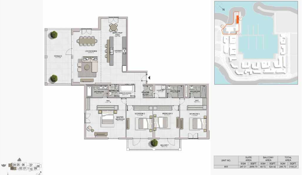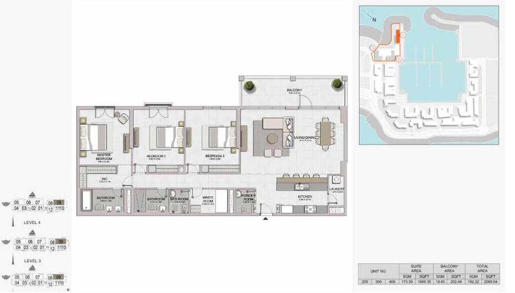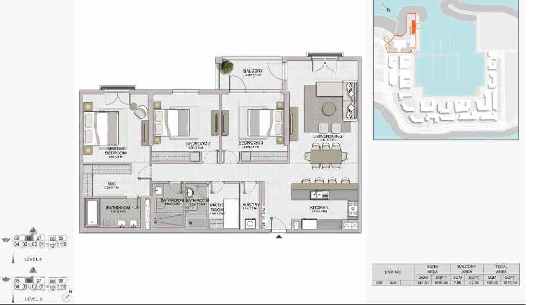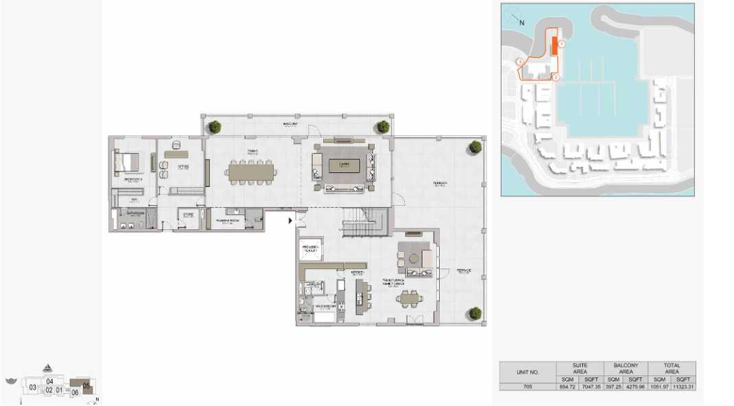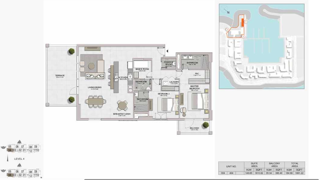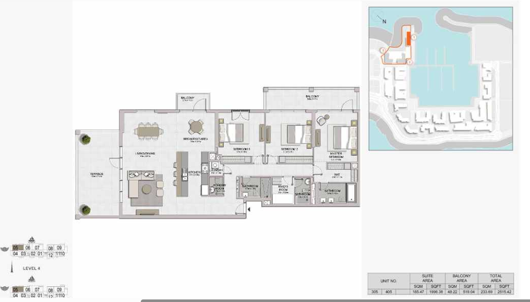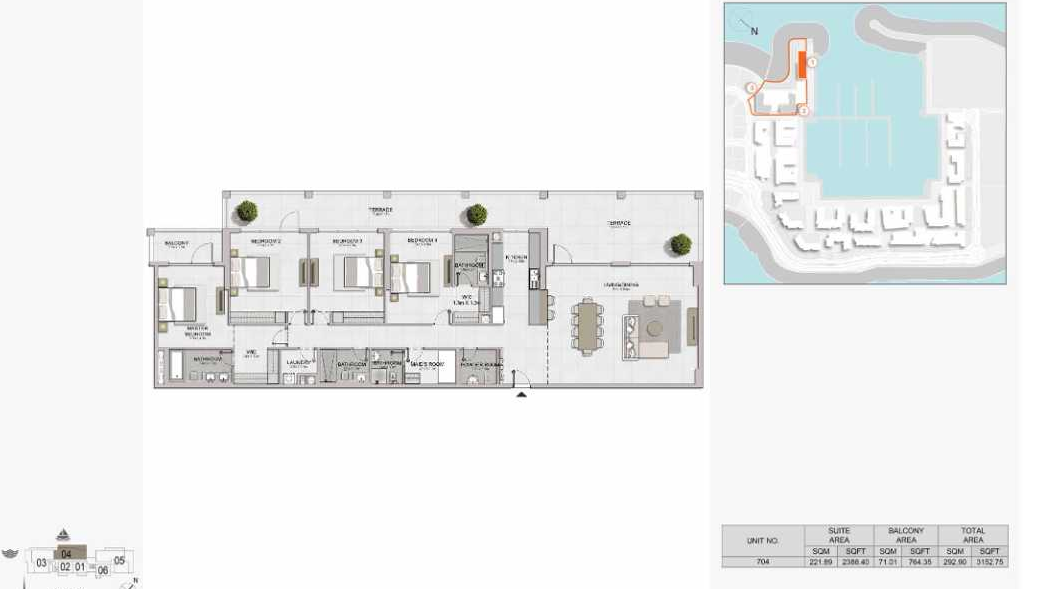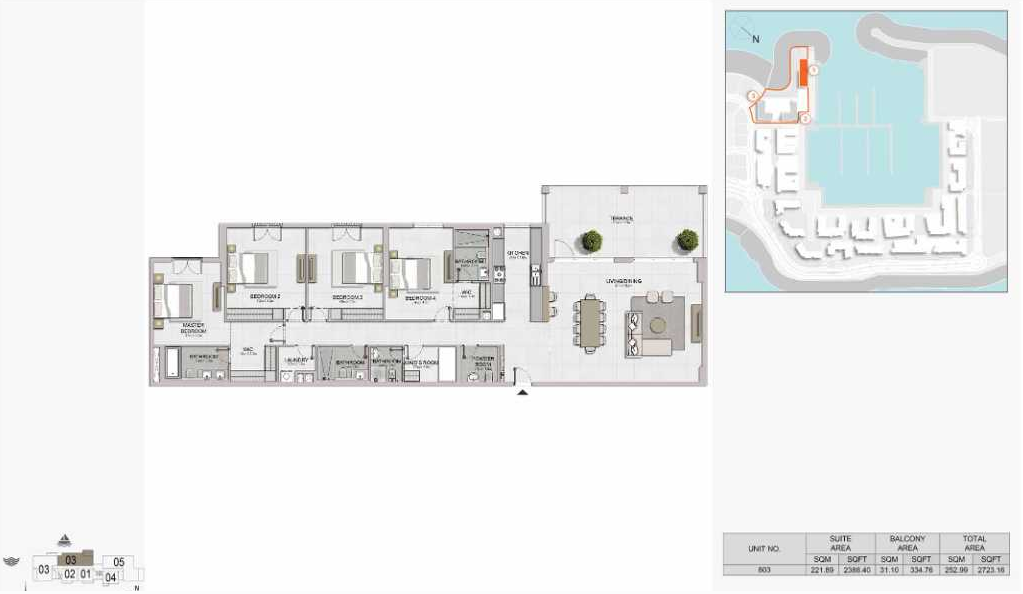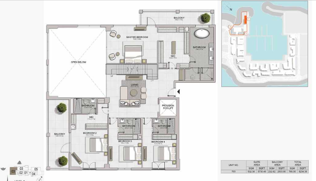 4-bedroom apartments in Le Ciel will have six bathrooms, a living/dining area, a kitchen, a maid’s room, a balcony and a spacious terrace. The apartments will have covered areas ranging from 2,723 sq. ft. to 3,890 sq. ft.