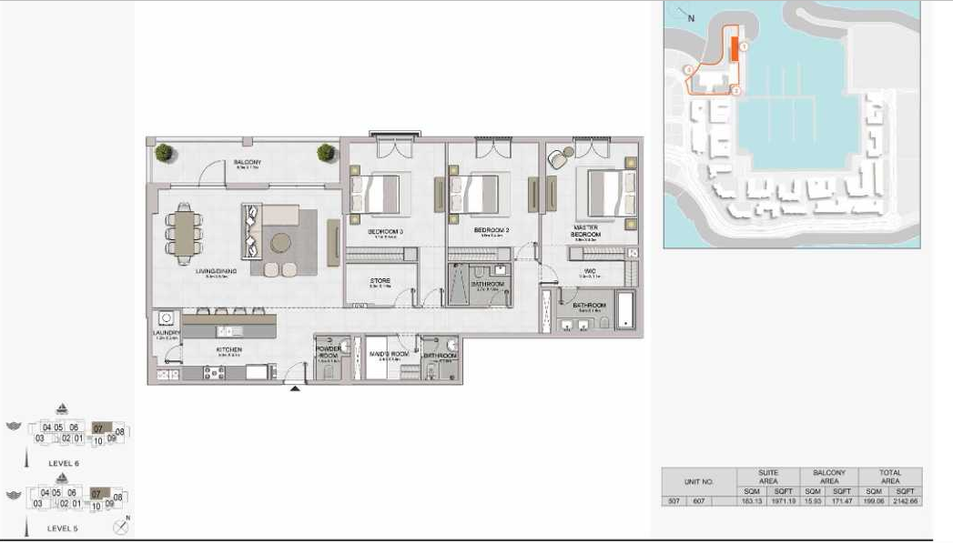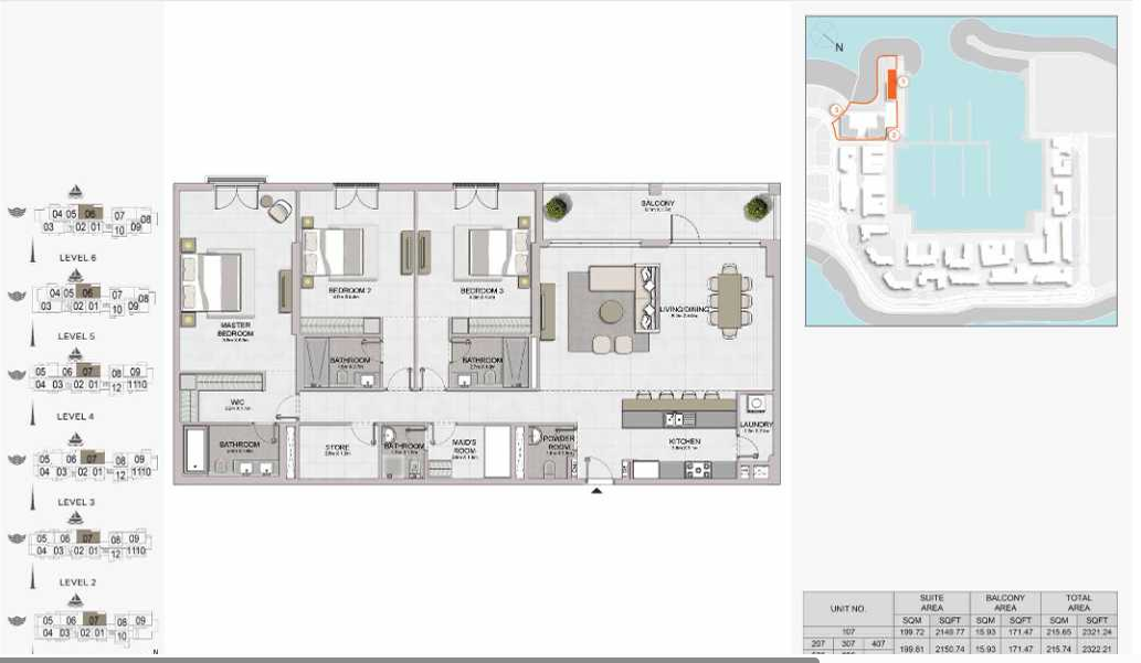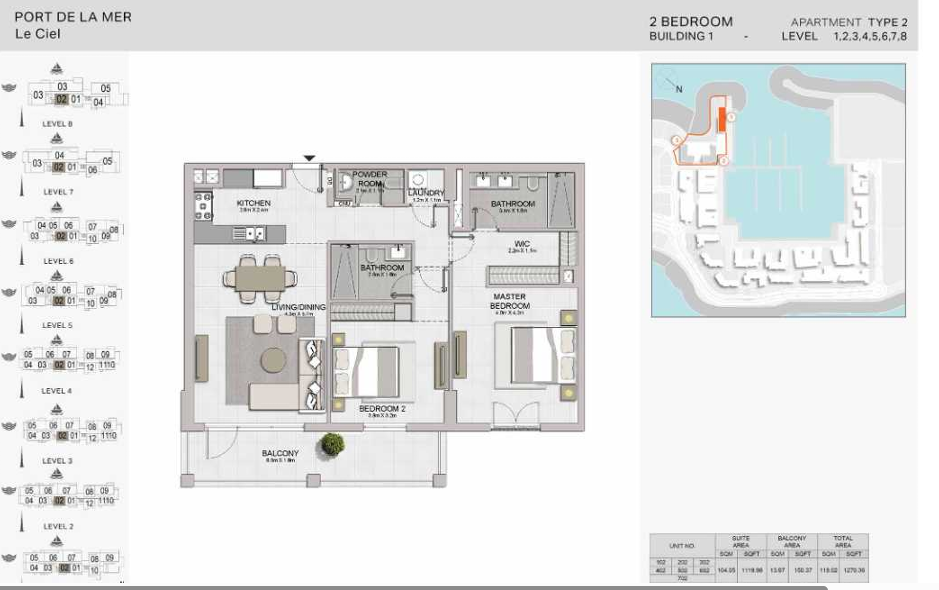Le Ciel Dubai offers 1, 2, 3, 4 and 5-bedroom apartments. The units will have high-end fittings for kitchens, bedrooms and bathrooms. The spacious balconies will offer beautiful views of the Arabian Gulf and developments in Jumeirah.