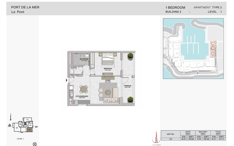 Le Pont Building 3 is located in Port de La Mer, Dubai. Le Pont Building 3 is being developed by Merass Holding. Le Pont by Meraas offers a selection of high-end designed 1, 2, 3 & 4-bedroom apartments and a penthouse. For the benefits of residents, these units are made available in sizes that range between 789.96 sq ft to 2854.48 sq ft. Making good use of the available space, these apartments present ideal living spaces, where privacy and security are at maximum.