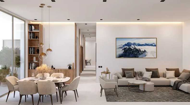 North-facing units capture panoramic vistas of the Hessa Street green corridors and landscaped JVC streets.