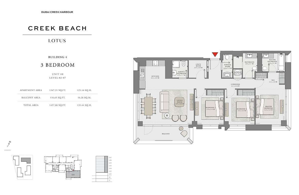 Lotus Building3 at Creek Beach by Emaar Properties is a newly launched, beach-inspired residential development offering a stunning collection of 1, 2, and 3-bedroom apartments. Set within a gated community of four mid-rise towers, this modern sanctuary blends comfort, convenience, and connectivity in one of Dubai’s most desirable waterfront destinations — Dubai Creek Harbour.